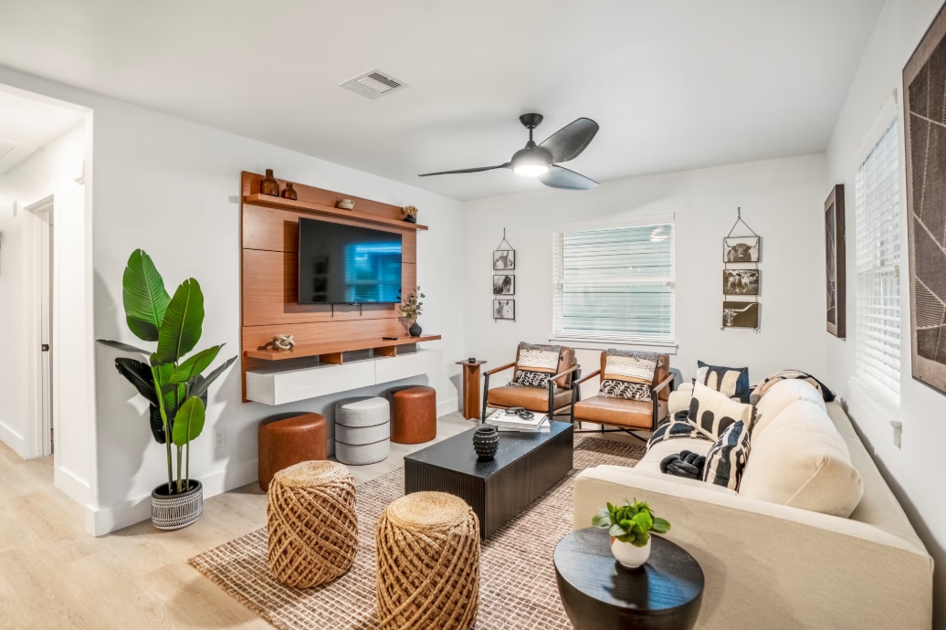 Located just 1 mile (about 10 minutes) from NRG Stadium and with quick, easy access to the 610 Loop, this home offers the ideal spot for your stay in Houston. Fully furnished and thoughtfully designed, it has everything you need to feel at home while you’re away. With 4 spacious bedrooms and 2 beautifully designed bathrooms, you’ll have plenty of room to work and relax. The fully fenced backyard, complete with a fire pit, is perfect for entertaining or unwinding after a busy day. Call now to schedule your private showing and make this home yours during your time in Houston!