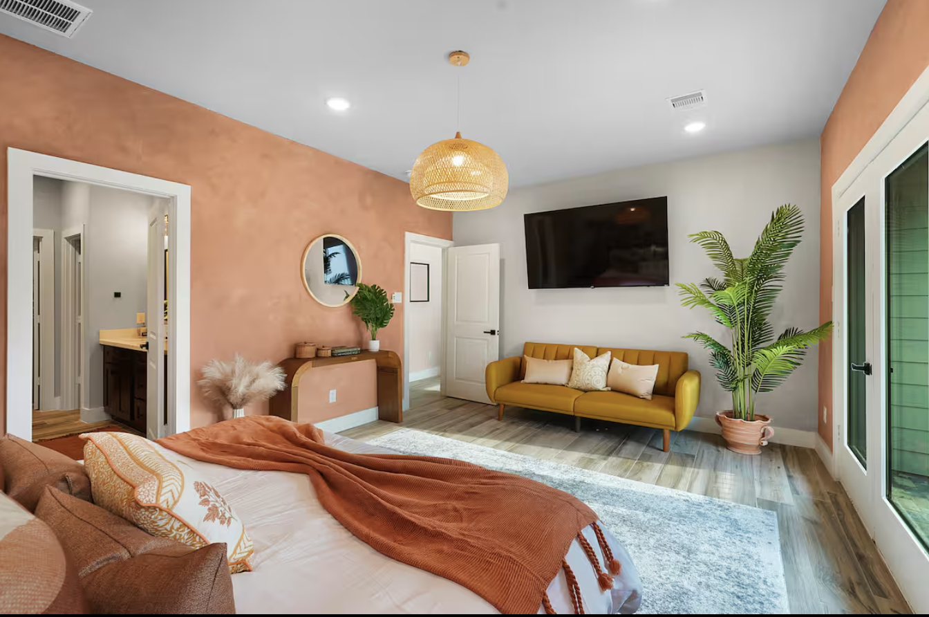 Stay in this spacious, newly built and beautifully renovated home in the heart of The Heights. With its modern Boho design, this retreat is just 15 minutes from downtown Houston and close to all major attractions. Located in a vibrant, family-friendly neighborhood, it’s a 6-minute walk to Whole Foods and 1 mile from great nightlife, shops, and restaurants. Relax in style and enjoy the perfect base for your Houston adventure!