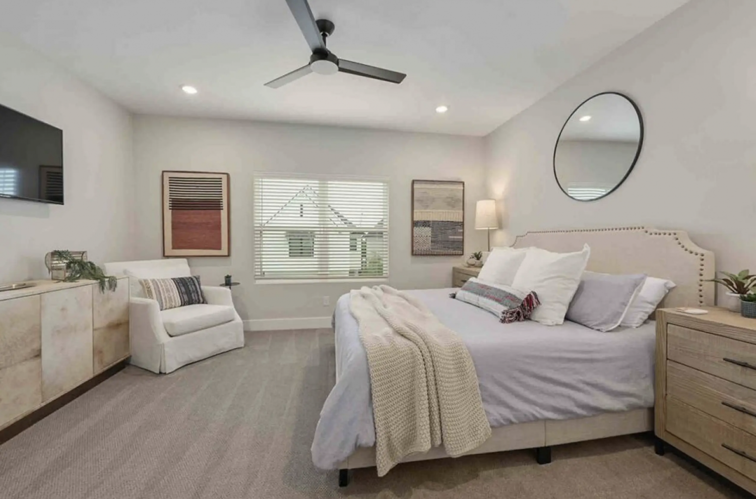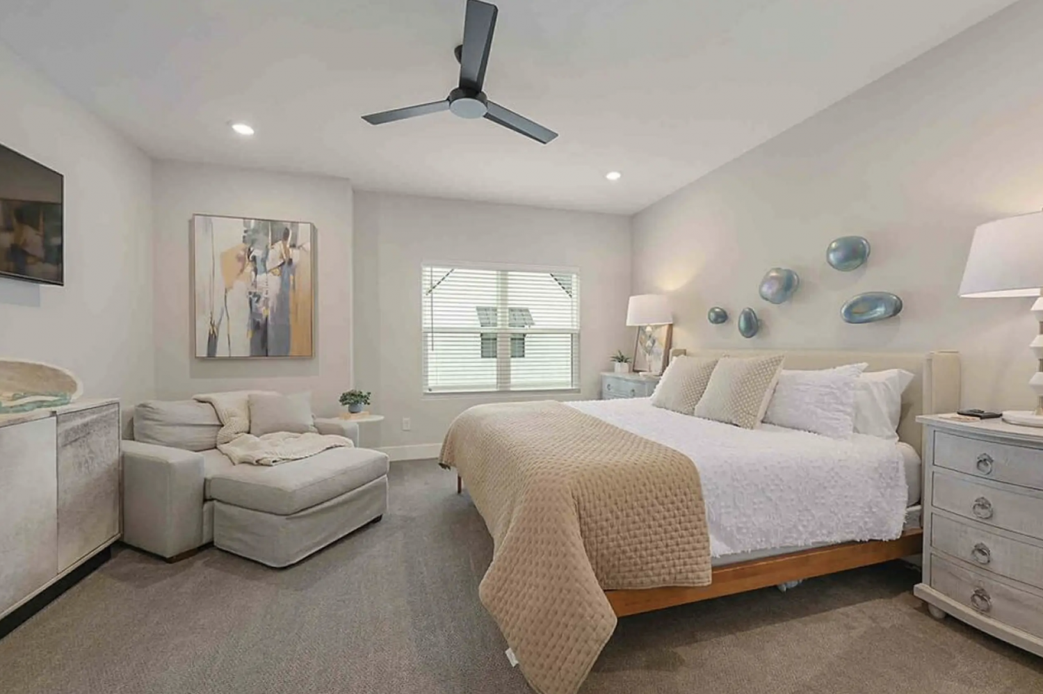 - A smart TV and cozy sitting chair