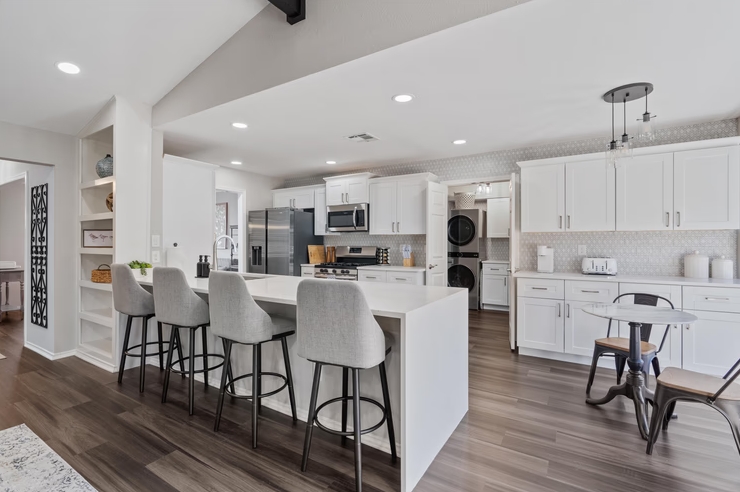 Modern, spacious 4BR/2BA Georgetown retreat perfect for long stays. 7 comfy beds, King suite, huge fenced yard, updated kitchen, smart TVs in every room, fast Wi-Fi, laundry, and quiet residential setting. Great for snowbirds, traveling professionals, or families relocating. Close to grocery, dining, parks, downtown, and schools. Flexible monthly stays, fully furnished with everything you need. Your cozy Texas home away from home!