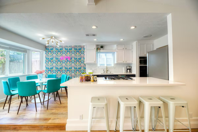 Welcome to your ✨ Insta-worthy getaway in the heart of North Austin! Whether you're planning a weekend escape, a family vacation, or a fun group trip to ACL 🎶, this vibrant home has everything you need for an unforgettable stay! Dive into your private seasonal pool (open March–November) 🏊♂️ surrounded by lounge chairs, tropical vibes, and total privacy 🌴. Inside, you’ll find a modern open layout with bold décor, neon signs, and cozy furnishings. The living space flows effortlessly from the stylish kitchen 🍳 to the sunny dining area 🍽️, making it perfect for making memories. 🛌 Sleep like royalty in three queen bedrooms and a fun bunk room with two twin-over-twin bunks. We also provide a comfy air mattress and plush couches if needed. ☕ Start your mornings with our fully stocked coffee bar, or fire up the grill for a backyard BBQ 🍔. End the day watching movies on the Smart TV or stargazing by the pool ✨. 📍Located just 6 minutes from The Domain and 15 minutes from Downtown, you're never far from Austin’s best restaurants, bars, music venues, and shopping 🛍️. This is your home base for adventure, fun, and serious relaxation 😌. Come make memories at one of Austin’s coolest stays!