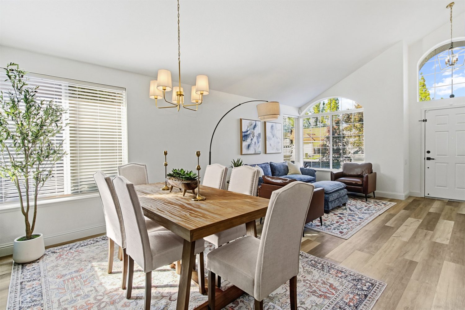 + Open-concept living + dining with vaulted ceilings and natural light that makes everything feel bigger