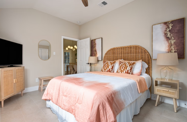 ★SLEEPING ARRANGEMENT Each bedroom is thoughtfully designed for a restful and private retreat: 🛏️ Master Bedroom: Queen-sized bed with luxurious linens, private ensuite bathroom, sofa, reading chair, and plenty of storage. 🛏️ Bedroom 2: Queen bed with soft bedding, nightstand, lamp, and private seating nook. 🛏️ Bedroom 3: Queen bed with fresh linens and ample storage. 🛋️ Living Room: Sofa bed (sleeps 2), no linens, towels, or pillows provided for this. Please ensure the correct number of guests is listed in your reservation, as towels and amenities are assigned accordingly.