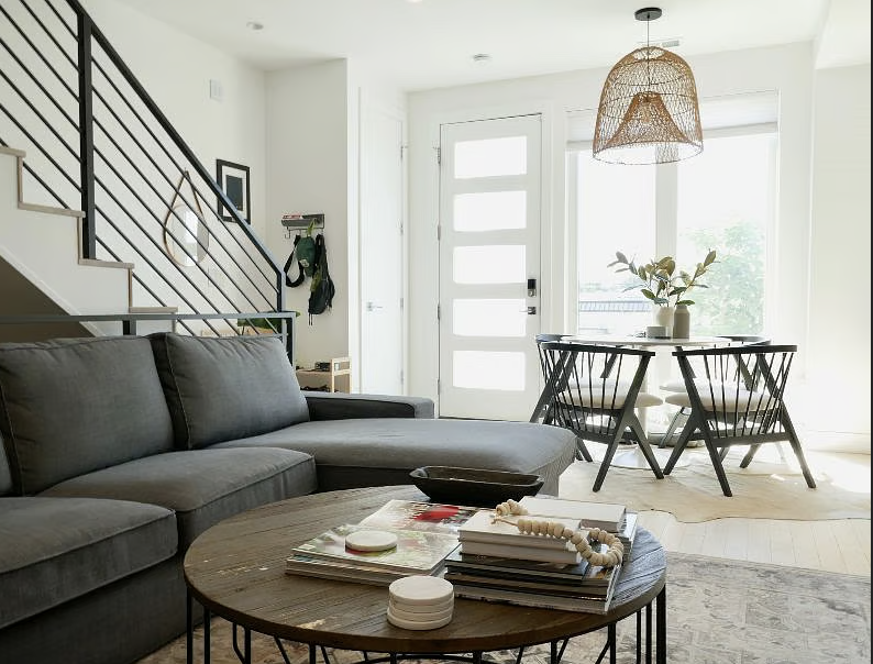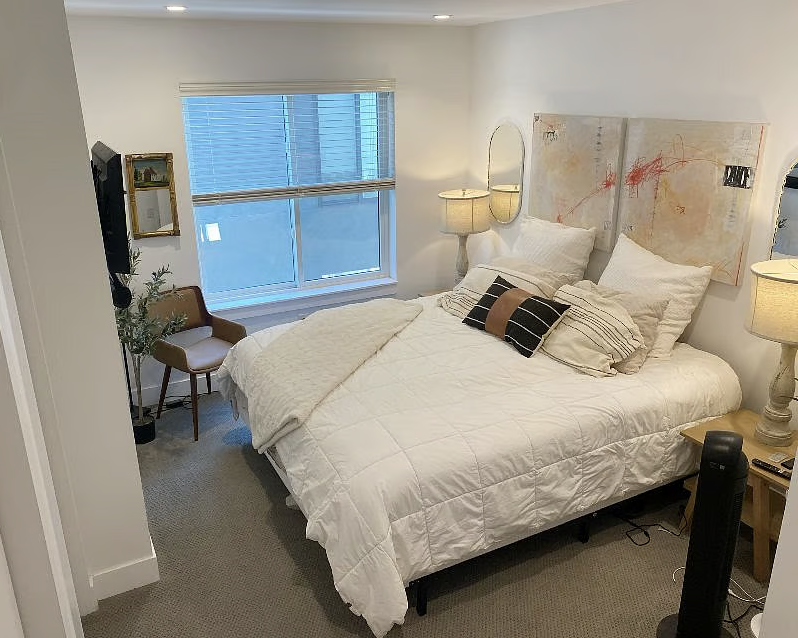 The rental will come with a California king sized bed in the primary room with a full closet and private bath, walk in shower and two sinks. The guest bedroom will have a queen sized mattress, desk, and a bathroom with a shower/tub and one sink, which will be accessible through the hallway. The main floor will include a dinning area, couch, and kitchen items for you to use. The basement will be where the laundry machine is located as well as access to the garage. In addition, the townhome has a heated driveway, which is perfect during those winter months.