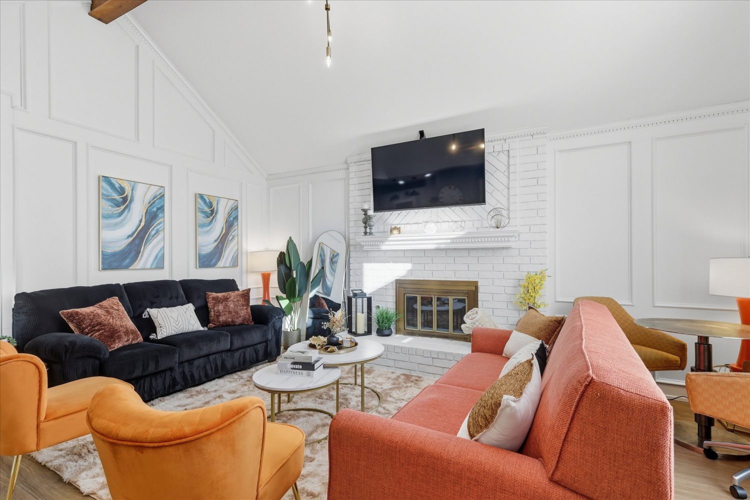 ✔ Coffee tables, designer décor, and vaulted ceilings