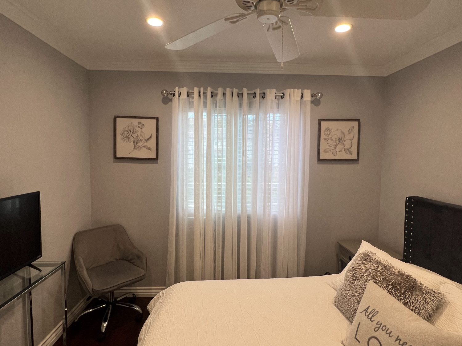 Spoil yourself in this luxurious home! Spend your days lounging in your private yard, cook in your chef’s kitchen and enjoy a meal in your incredible dining area. Relax on your comfy sofa in the living room with a cozy fireplace or work from home with high speed Wifi at your convenient desk. At the end of the day head to your relaxing bedroom for a retreat. Wake up and get refreshed in your luxurious bathroom.