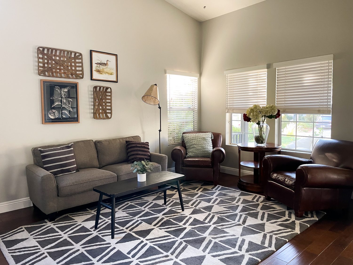 Fully remodeled, single story view property. Pet-friendly with fenced back yard. Vaulted ceilings, hardwood floors, and fresh designer paint colors. The kitchen has been redone with upgraded counter tops and tile backsplash, new cabinets with glass inserts, and stainless steel appliances which all coordinate with the family room and modern fireplace. Three spacious bedrooms recently painted and carpeted. Both the master bath and secondary bath have updated tile flooring, vanities, mirrors, faucets, showers, and lighting. Finished 2 car garage with and epoxy flooring. Outside pergola cover with mountain views. This home is a fully furnished, all-inclusive rental: All utilities, WiFi, gardener, bedding, towels, kitchen supplies, etc. are covered.