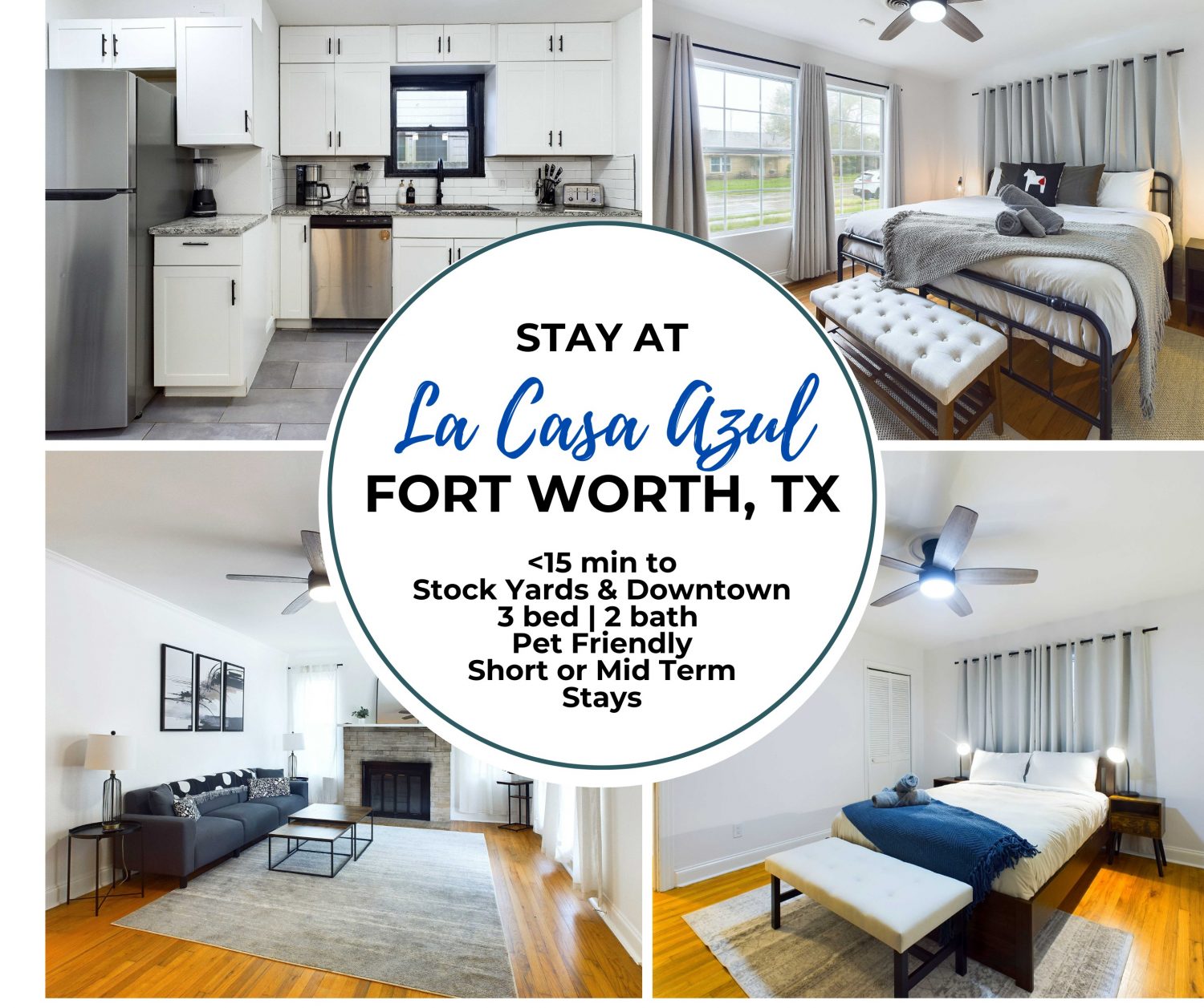 Experience the blend of homey charm and professional hospitality at La Casa Azul, where comfort meets convenience. Book now to make the most of your Fort Worth stay – whether it’s for business, pleasure, or a little of both!