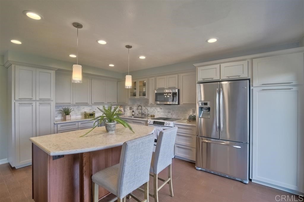 The newly remodeled kitchen features state-of-the-art appliances and plenty of counter space. The area is bathed in natural light, thanks to a spacious deck and large windows that add to the home's inviting atmosphere.