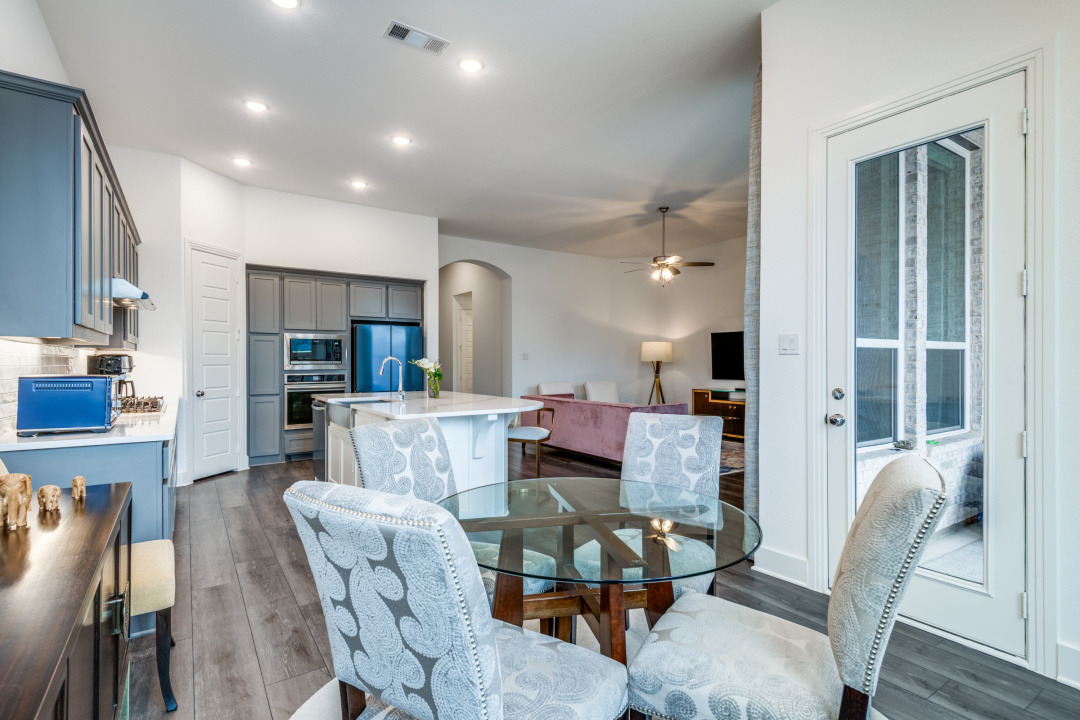 ​Step into this beautifully designed one-story boutique home that combines style, comfort, and functionality. Featuring 2 oversized secondary bedrooms with a full bath conveniently nestled between, this layout offers ample space and privacy. An offset study with a nearby half bath provides the perfect spot for working from home or pursuing hobbies. The primary suite is a true retreat, boasting a spa-like bathroom with a freestanding tub, a sleek all-glass shower, and thoughtfully designed features to unwind in style. Enjoy leisurely mornings in the cozy breakfast nook, enhanced by a bay window that invites natural light to flood the space. Elegant details are everywhere, including upgraded carpet and plush padding in all bedrooms and closets, complemented by rich wood flooring throughout the entry, extended entry, family room, hallways, garage entry, study, kitchen, nook, and pantry. Step outside to the extended outdoor living space, perfect for entertaining or relaxing under the open sky. This home is the perfect size for families of all shapes and sizes, blending sophistication with practicality to meet your needs.