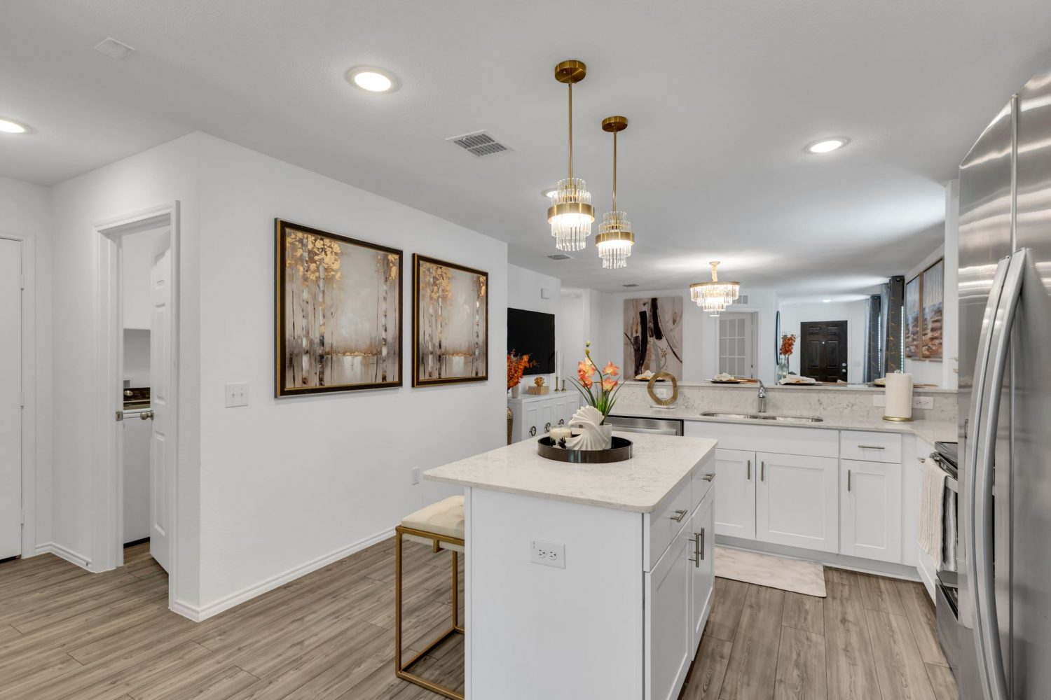 Welcome to Lake Meadow, an upscale 4-bedroom, 2-bath home in a quiet, family-friendly neighborhood in Princeton, TX. This elegant residence features a bright open layout, designer finishes, and high-end furnishings throughout. Enjoy comforts like high-speed Wi-Fi, a smart TV, blackout curtains, memory foam mattresses, and ceiling fans in all bedrooms for added comfort. The fully equipped kitchen is perfect for home-cooked meals, and a dedicated office space with a twin daybed makes remote work easy. Additional amenities include in-unit laundry, keyless entry, garage parking, biweekly cleaning, and valet trash service. Ideal for corporate stays, insurance housing, or families seeking luxury and convenience.