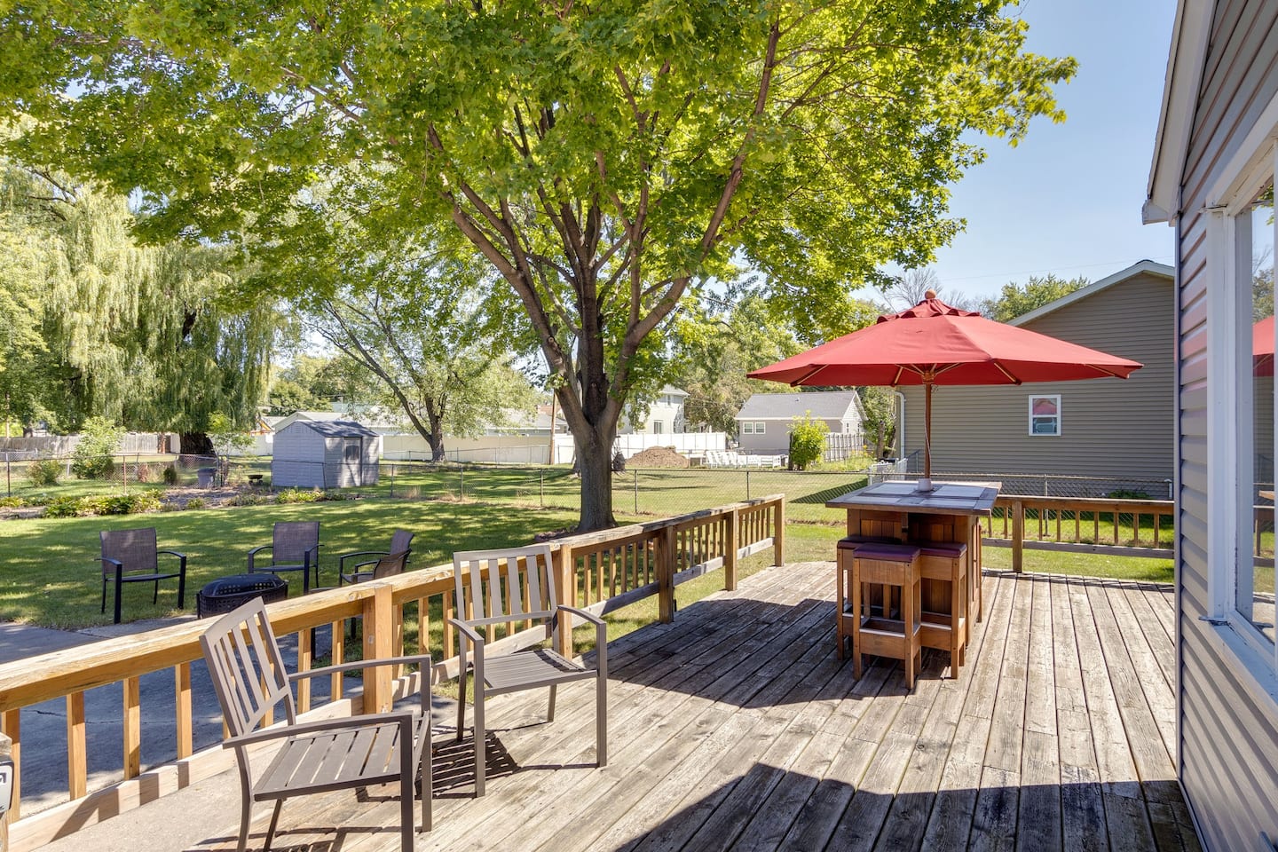 Now, let's talk about the deck. It's tailor-made for pre-game tailgating, where you can grill, share stories, and immerse yourself in the electric atmosphere. Rain or shine, you're covered thanks to our finished garage, which transforms into the ultimate Packers party zone.
