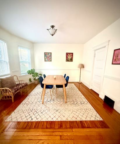 Large Family Friendly 3/1 Condo in Dorchester includes a large living area with a desk and smart TV, a dining room, and a fully equipped kitchen. Kid-friendly with in-unit laundry, it offers all-inclusive utilities: WiFi, heat, water, and electricity. Just a 5-minute walk to public transport, you'll have easy access to Downtown Boston and major hospitals like MGH and BMC.