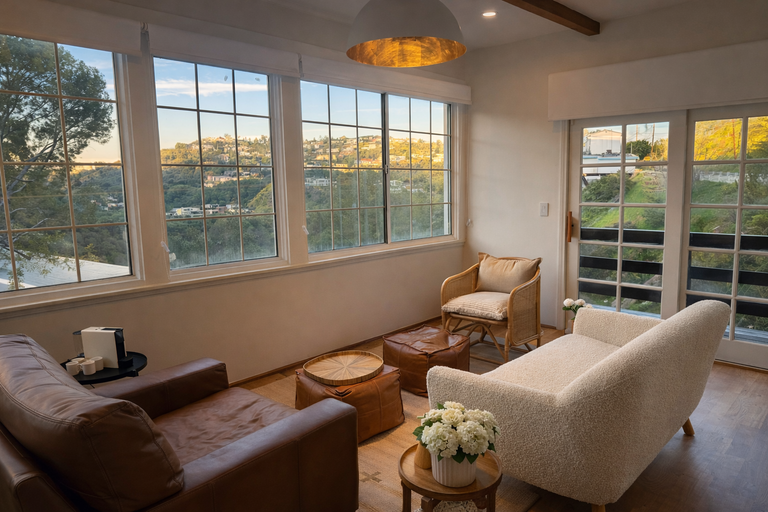 At the same time, Laurel Haus offers qualities that help ease the transition during a temporary relocation. Bright interiors, natural light, and peaceful canyon surroundings create a calm, livable atmosphere, while outdoor spaces - including balconies and a front terrace - provide access to fresh air and a sense of openness. The setting allows occupants to feel settled and comfortable.