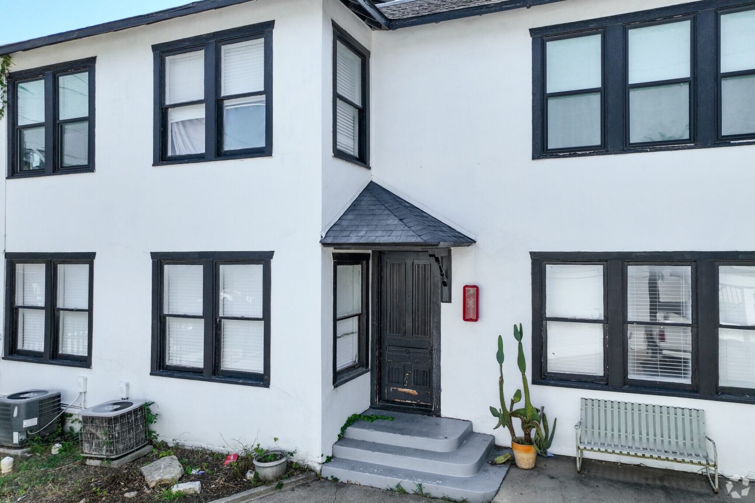 Comprised of 5 buildings, Leuda-May offers 8 different one or two bedroom floor plans as well as a separate 3 – bedroom house that sits in the center of the property. The distinctive features that you would expect to find in buildings from the 1920’s have all been restored and modern comforts have been added. The district itself is composed of five contributing buildings and one contributing structure built between c. 1923 and 1936 with an addition to one of the buildings around 1941. Three of the resources are 2-story apartment buildings, two are 2-story garage/apartment buildings, and the structure is a small stuccoed trash shed.