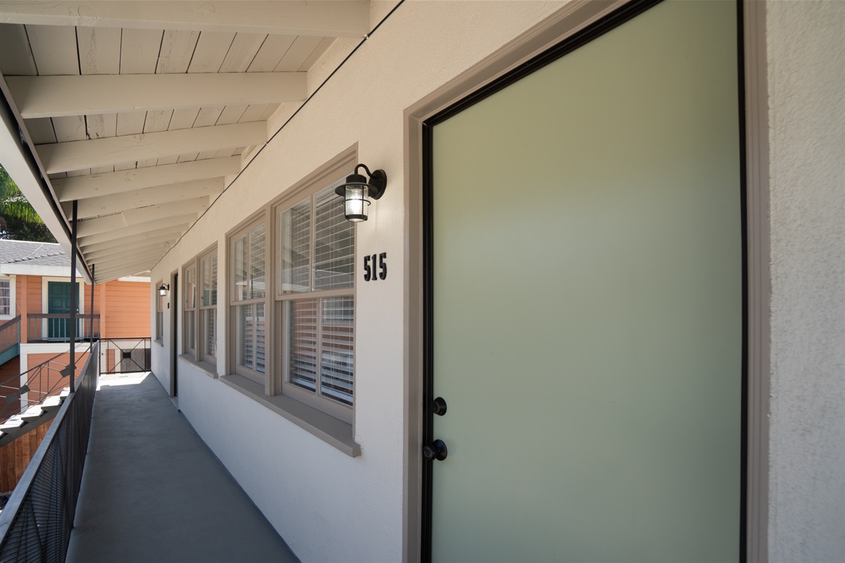 This is a second story apartment, located over a 2 car garage. You'll need to climb an exterior staircase to get to the front door. There is one shared wall with another apartment. There is potential for noise from the other apartment unit. The apartment building sits back from the street, behind a large house.