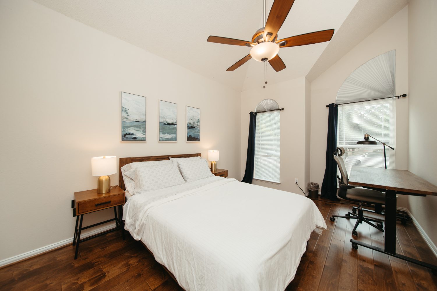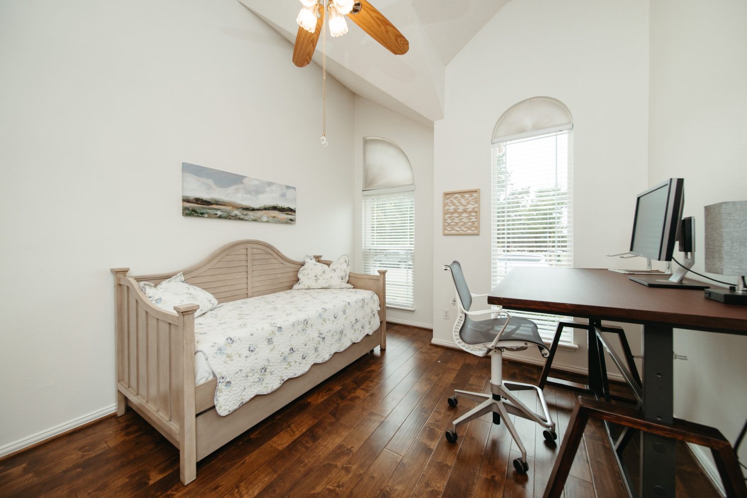 4th bedroom is current set up as home office, with adjustable oversized writing desk, and a day sleeper sofa that can sleep two when necessary.