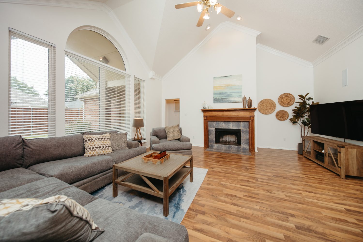 Pristine single-story vault-ceiling home in the heart of Flower Mound! Featuring 4 bedrooms, 2 full baths, spacious living area, gourmet island kitchen, 2-car garage and more! This house has been completely updated with laminate floors, warm designer colors, ceramic wet areas, breakfast nook, private owner's suite with his and her sinks, make-up station, shower tub, separate walk-in shower and a walk-in closet. Oversized corner lot with big, fully fenced backyards, ideal for pets. Plus 240V/40A Lv2 EV charging in garage