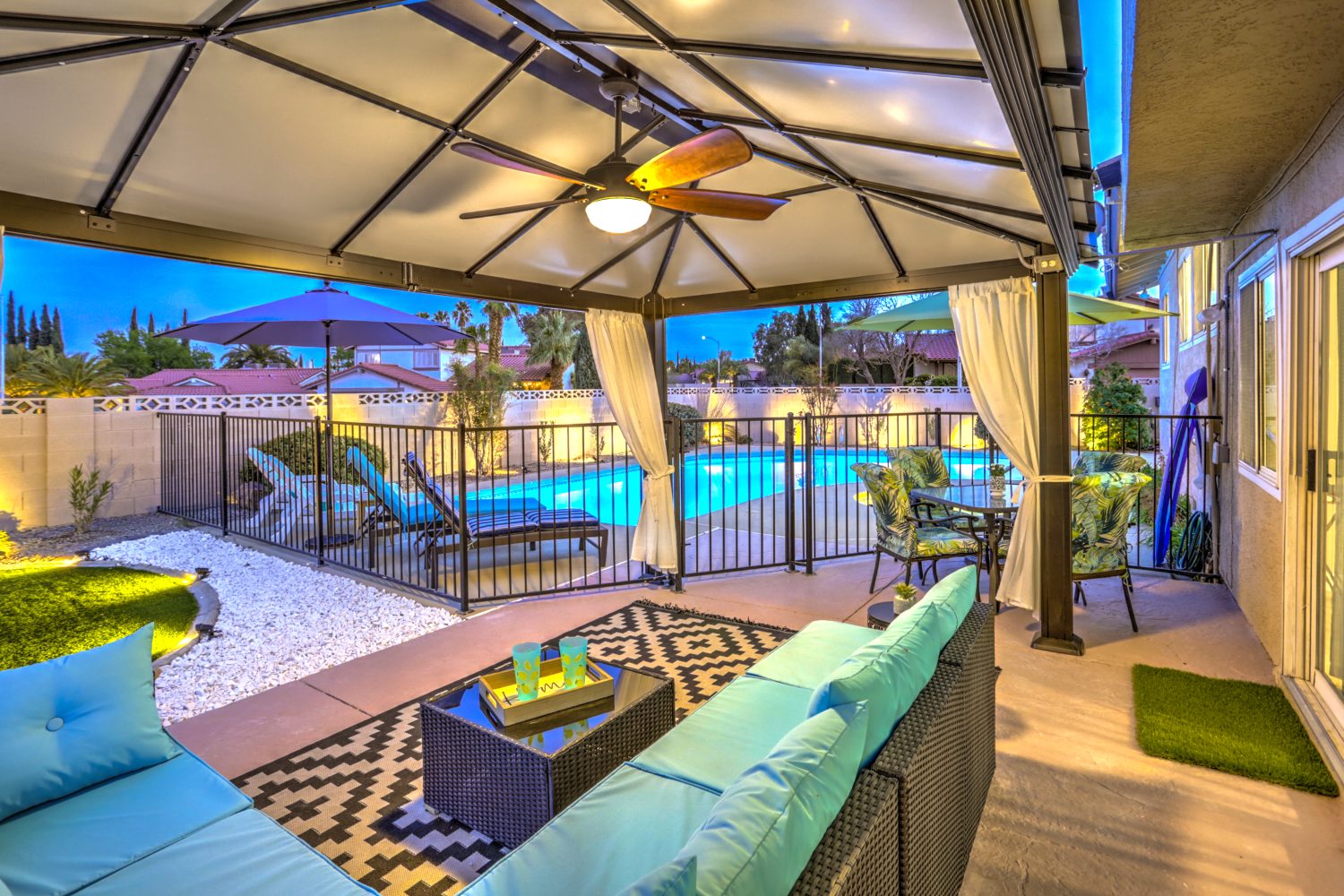 Luxury 2 Story, 4BR Single Family home, convenient for 10+1 people. Fully remodeled, open living area with a modern kitchen, secondary/entertaining living room with a pool table. The house is equipped with a private gym, backyard with pool, heated spa for your day & night entertainment. Located in a quiet neighborhood, near by the most desired shopping centers with variety of stores and top rated restaurants. Close by to some of the best Golf courses in Las Vegas and top rated local casinos.