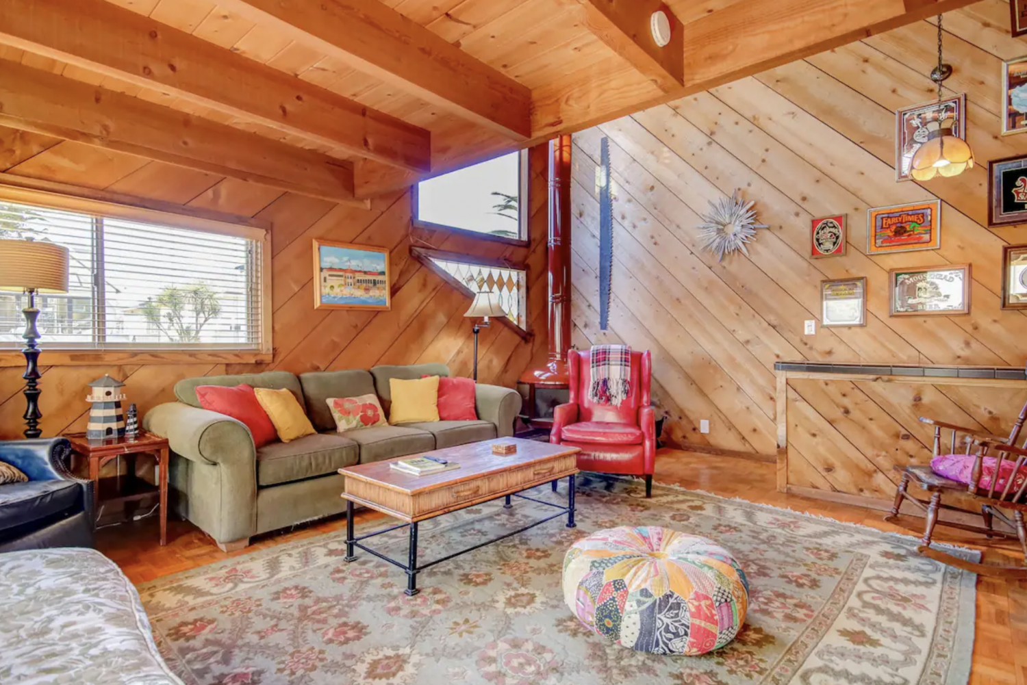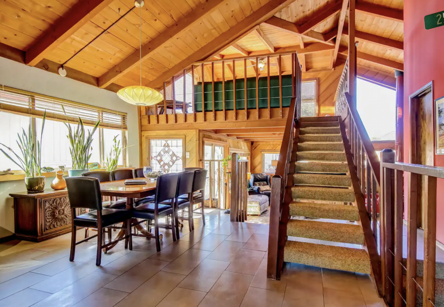 54.This charming multi-level home combines modern comfort with rustic style, featuring vaulted wood-beam ceilings, an open living area, a fully equipped kitchen, and an expansive deck with serene views. With cozy bedrooms, a unique loft, and stylish bathrooms, it’s the perfect retreat near nature and amenities.