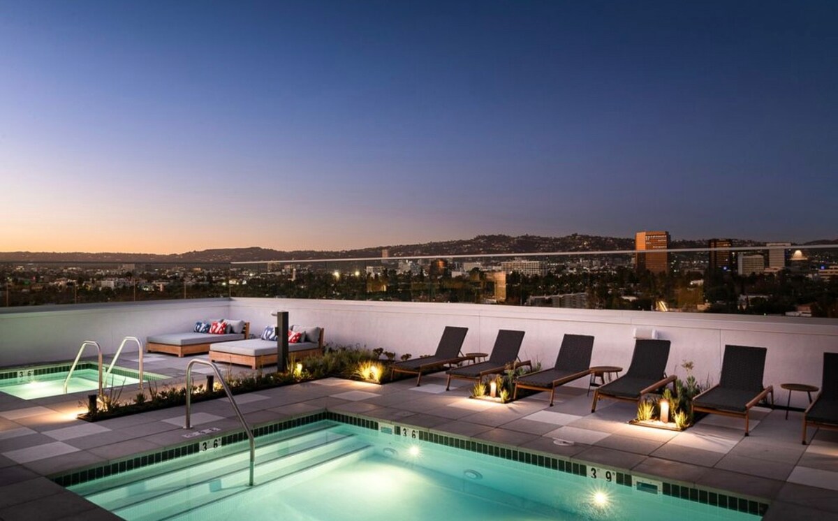 Elevate your lifestyle with this stunning Apartment in the heart of Pico Blvd, Los Angeles. Experience the sleek modern design, panoramic city views, and exclusive amenities including:?? Pool & Jacuzzi?? WFH Areas?? Shared Projector & Ampitheatre Seating?? Covered Dining Deck & Kitchen?? BBQ Grilling Station?? Shared Firepit?? Ping Pong Table?? Rooftop Pet Park & Spa?? Club Lounge?? Indoor and outdoor Gym Facility?? Outdoor Training deckThe spaceWelcome to Ultimate Luxury! Here's what you can expect in our Modern Luxury unit:Living Room:- Comfy sofa - Smart TV where you can enjoy streaming applications!- Fast Wifi for remote workBedroom:- Relaxing Queen sized bed- Smart TV- Dedicated workspaceKitchen:- 4 seater Dining Table- Refrigerator- Oven & stove- Microwave- Keurig coffee machine- Toaster - Kitchen utensilsBathroom:- Shower and other bathroom essentials. - We also have In unit washer and dryer - feel free to use!Guest accessYou have the whole unit exclusive for you.Complex shared amenitiesOther things to note- Please note that we do have a pet fee of $50 only for 1 pet and will be asking for $200 Pet Fee security deposit, which will be refundable within 2-3 business days after your check out date if found that there is no damages caused by pet after your stay.- Coffee, sugar and other spices are not provided for allergen purposes. We also provide only starter essentials on your stay and it will be ideal for you to bring your own essential items to use.