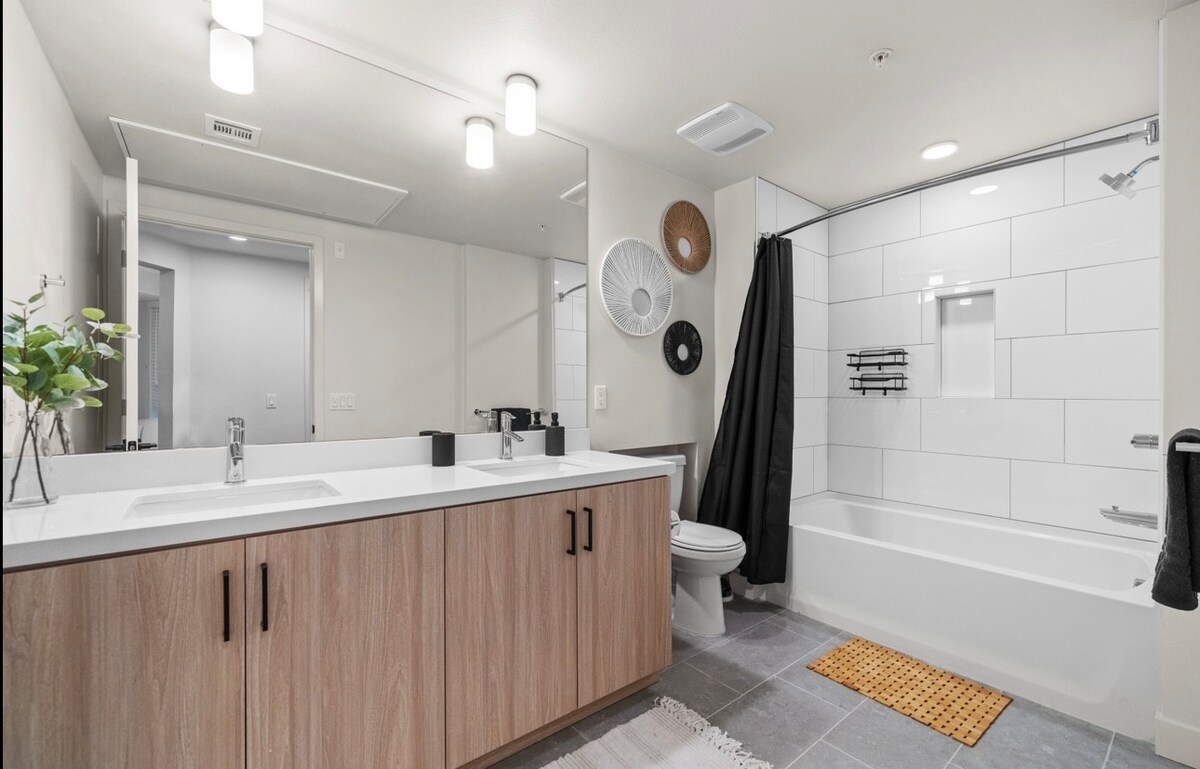 Welcome to our lavish oasis in Irvine! This luxurious apartment offers modern comfort and elegance. Featuring sleek contemporary design, high-end furnishings, and stunning views, this space promises an unforgettable stay. Free Access to:?? Pool & Spa?? Fitness Studio?? Co-working Lounge?? High Speed WiFi?? Very Central ?? Rooftop Deck?? Club Room?? Outdoor Dining & Grilling ?? 24/7 concierge ?? Washer and Dryer in unit The space Welcome to Ultimate Luxury! Here's what you can expect in our Modern Luxury unit:Living Room:- View from the top floor- Comfy sofa - Smart TV where you can enjoy streaming applications!- Dedicated workspace for remote work Bedroom:- Relaxing Queen sized bed- Smart TV Kitchen:- 4 seater Dining Table- Refrigerator- Oven & stove- Microwave- Keurig coffee machine- Toaster - Kitchen utensils Bathroom:- Shower and other bathroom essentials. - We also have In unit washer and dryer - feel free to use!Guest access You have the whole unit exclusive for you.Pool, Gym, Spa, Conference Rooms & ample WFH spaces are all shared spaces with other tenants in the building. All these are free to use.Other things to note- Please note that we do have a pet fee of $50 only for 1 pet and will be asking for $200 Pet Fee security deposit, which will be refundable within 2-3 business days after your check out date if found that there is no damages caused by pet after your stay.- Coffee, sugar and other spices are not provided for allergen purposes. We also provide only starter essentials on your stay and it will be ideal for you to bring your own essential items to use.