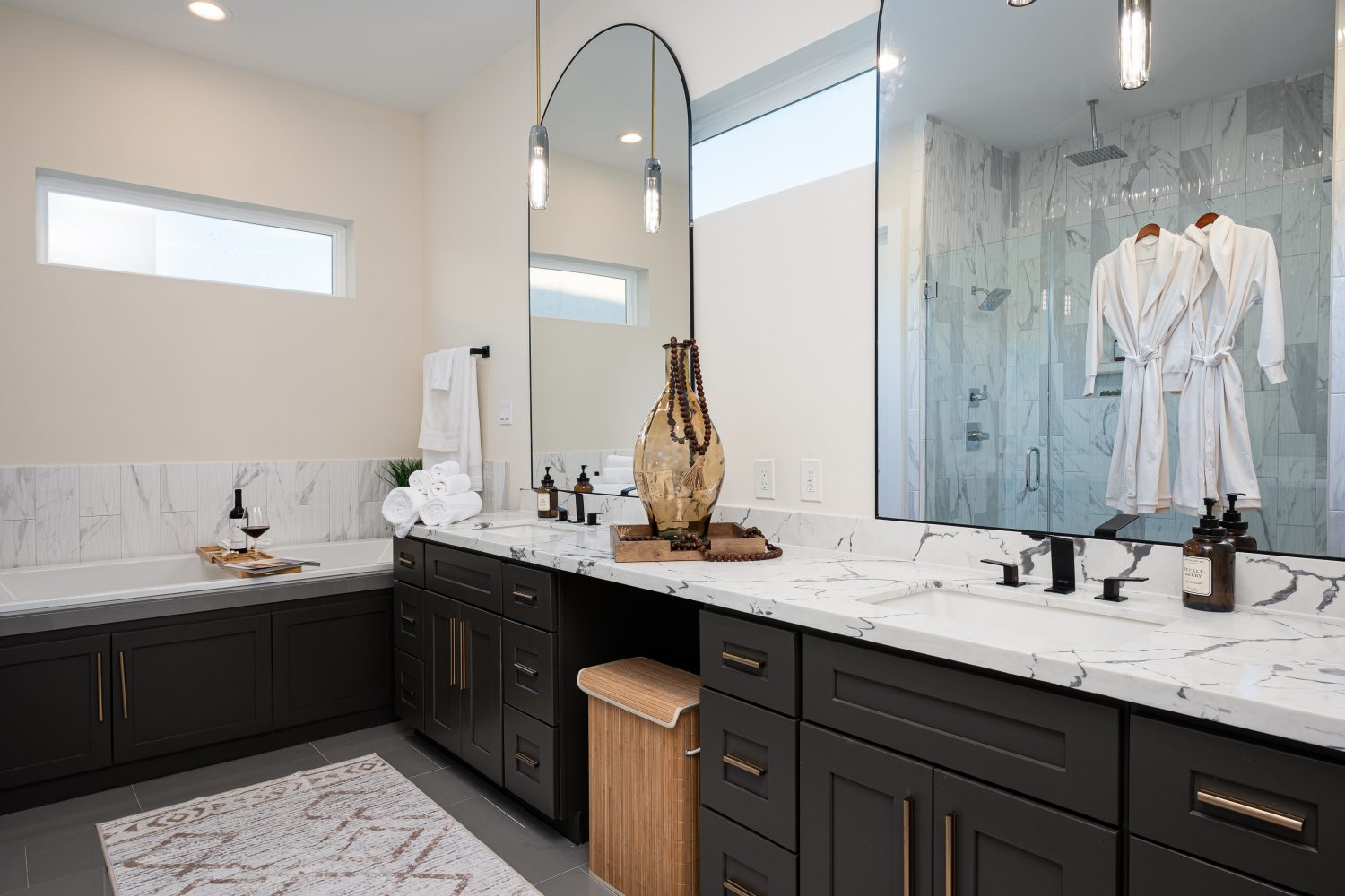• 🌿 Bedroom 3: Queen-size bed with comfortable mattress and adjustable base. Combination of cooling and regular pillows. Spacious walk-in closet. 55" TV. En-suite bathroom with soaker tub and shower.