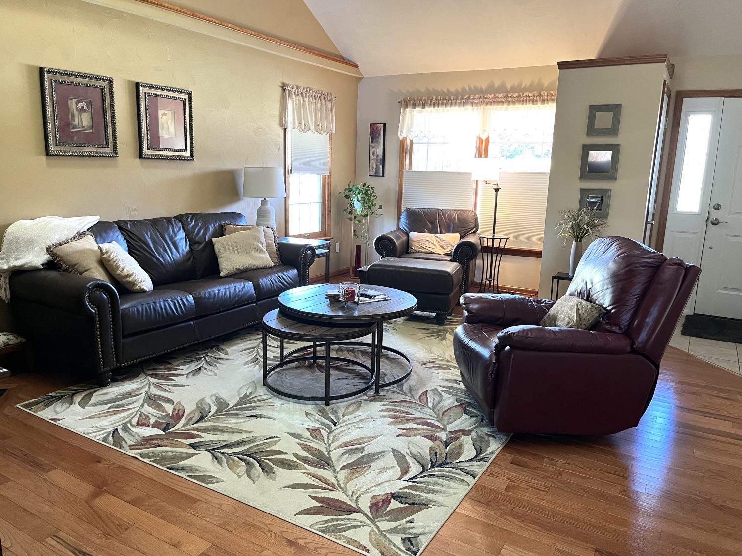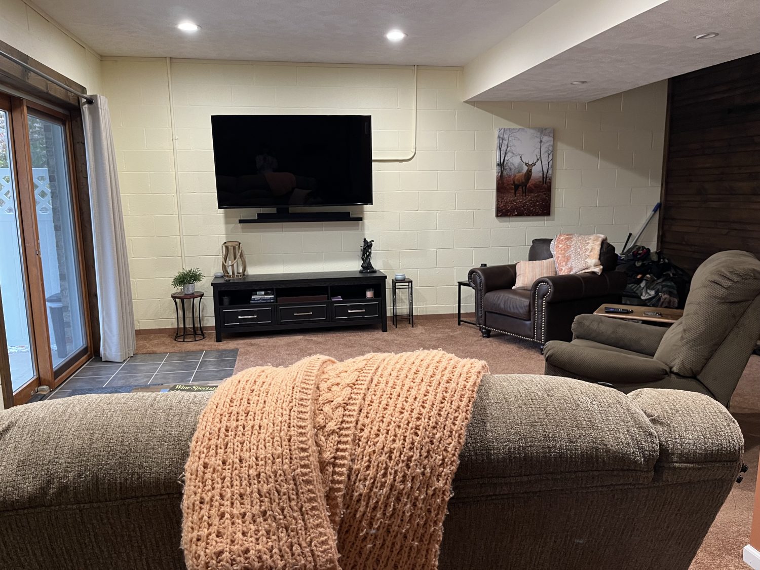 Basement has kitchen, laundry room, full bath with a steam room. Reclining couch, and two reclining chairs to watch the 65 inch television. Exercise Equipment available if you need a workout in!