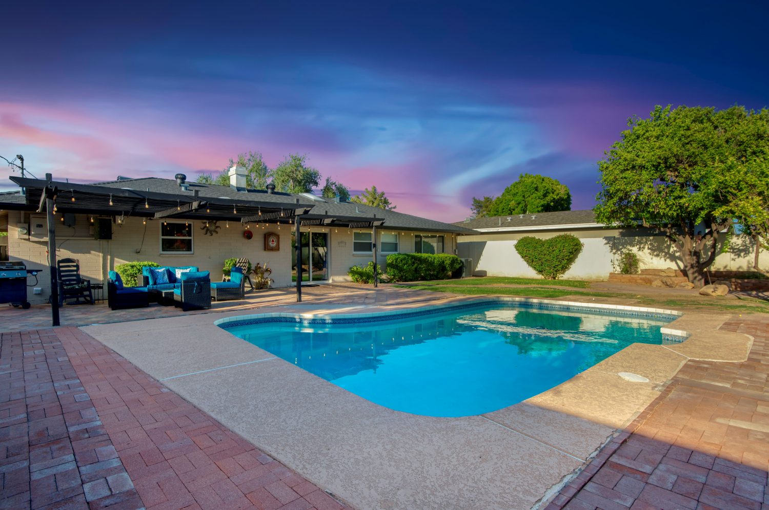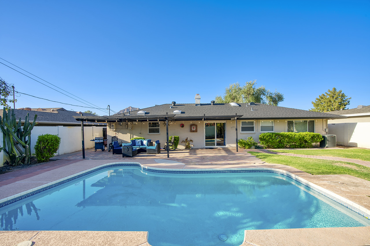 This stunning Scottsdale home is the ultimate retreat, perfect for families, groups, and pet owners alike, comfortably accommodating up to six guests with brand-new furnishings and all utilities included. Located in a safe, upscale neighborhood just minutes from downtown Scottsdale’s top dining, shopping, and entertainment spots, this property offers everything needed for a relaxing, luxurious stay. The highlight is a private, heated pool surrounded by a beautifully landscaped yard—ideal for enjoying Arizona’s sunny weather. Inside, the home boasts a fully stocked kitchen, spacious bedrooms with fresh linens, and well-equipped bathrooms. Each room features smart TVs, high-speed Wi-Fi, and modern conveniences to keep everyone entertained and connected. With free on-site parking, easy access to nearby hiking trails, golf courses, and local attractions, and a pet-friendly policy, this Scottsdale gem is designed to make your stay memorable, convenient, and endlessly enjoyable.
