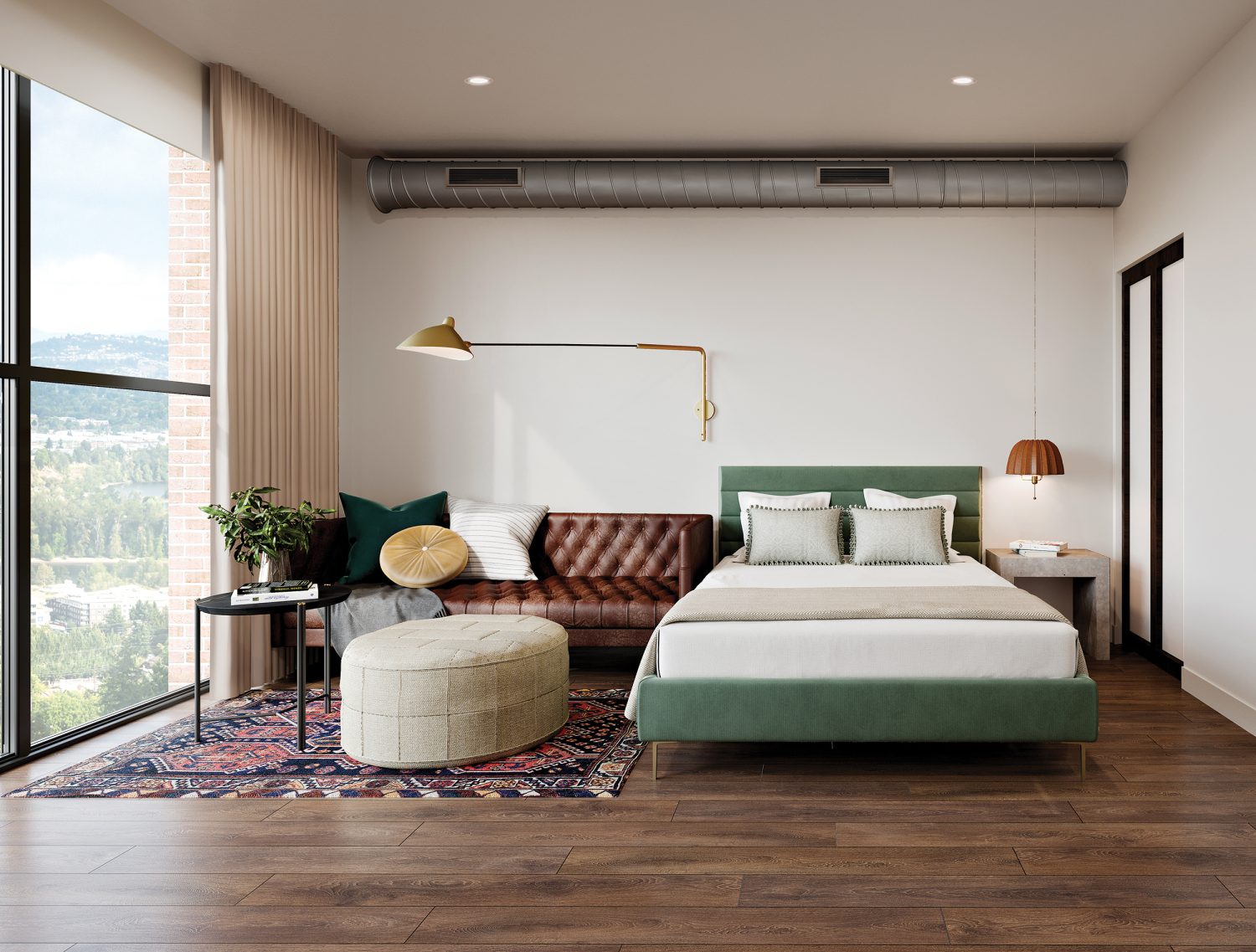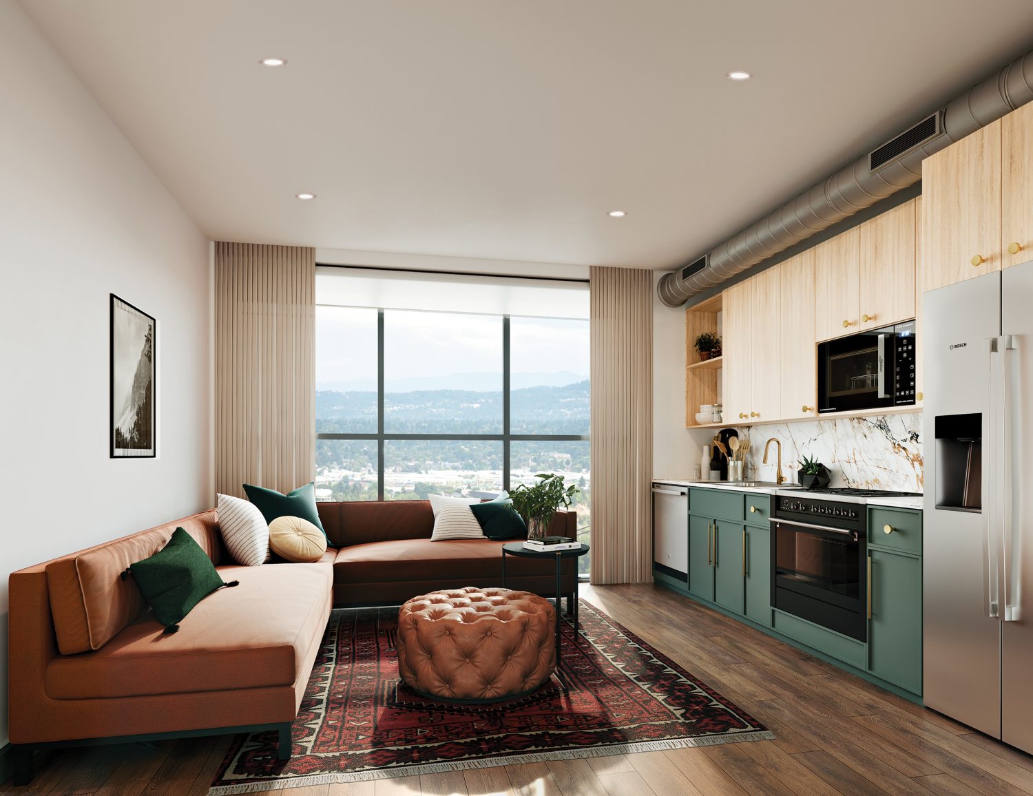 Memoir Buckman provides Studio, One-Bedroom, and Two-Bedroom apartments with thoughtful attention to design details, including brushed bronze, satin brass, and matte black hardware, distinctive tile, and a palette of Earth tones inspired by Portland's natural landscape and Buckman's laid-back charm in Portland's most vibrant Central Eastside neighborhood.