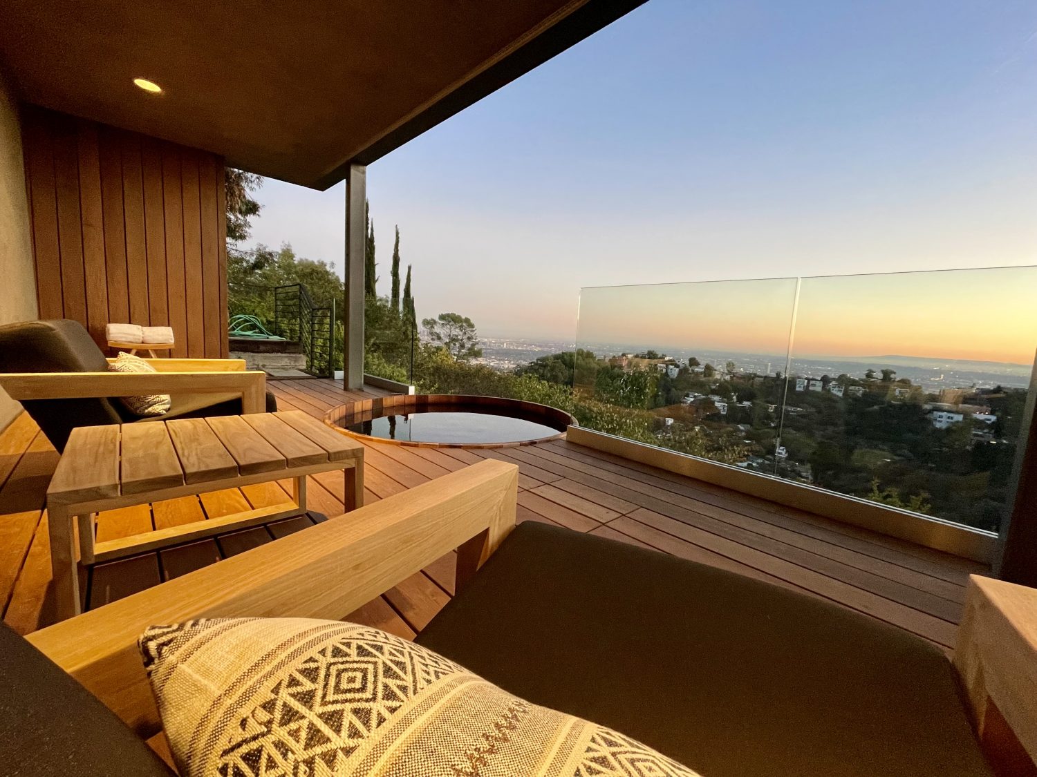 Experience Merkaba Home, a luxurious long-term Japanese Zen-inspired retreat in Laurel Canyon, Hollywood Hills. This fully furnished modern residence offers breathtaking canyon and city views, open floor plans, and seamless indoor-outdoor living through floor-to-ceiling windows and retractable glass walls. Designed for privacy and tranquility, it features spa-like amenities including Japanese Hinoki soaking tubs and a cedar hot tub deck. Merging elegant simplicity with natural beauty, Merkaba Home is a serene architectural sanctuary ideal for relaxation, meditation, and harmonious living.