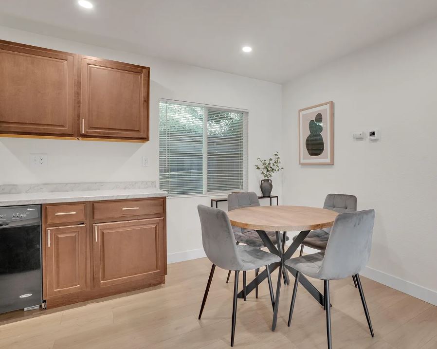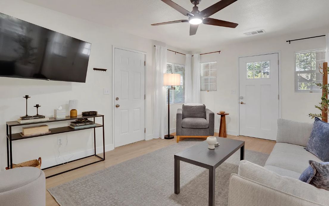 This stylish, mid-century modern home offers a perfect blend of charm, comfort, and convenience in a quiet, tree-lined community. two beautifully designed bedrooms full of warmth and character.