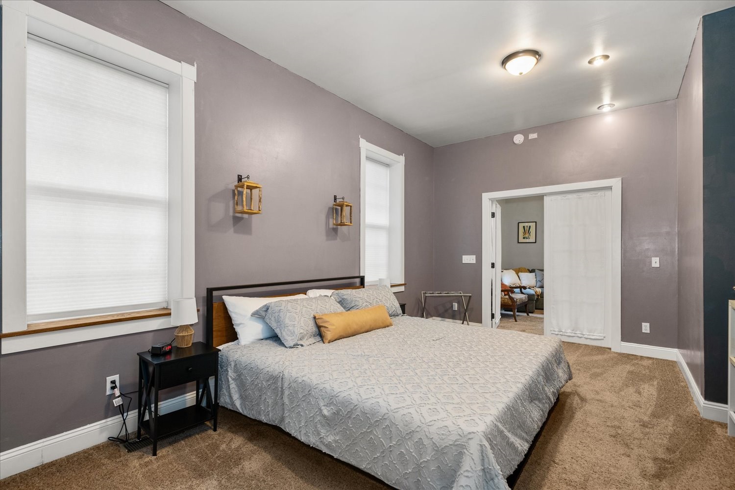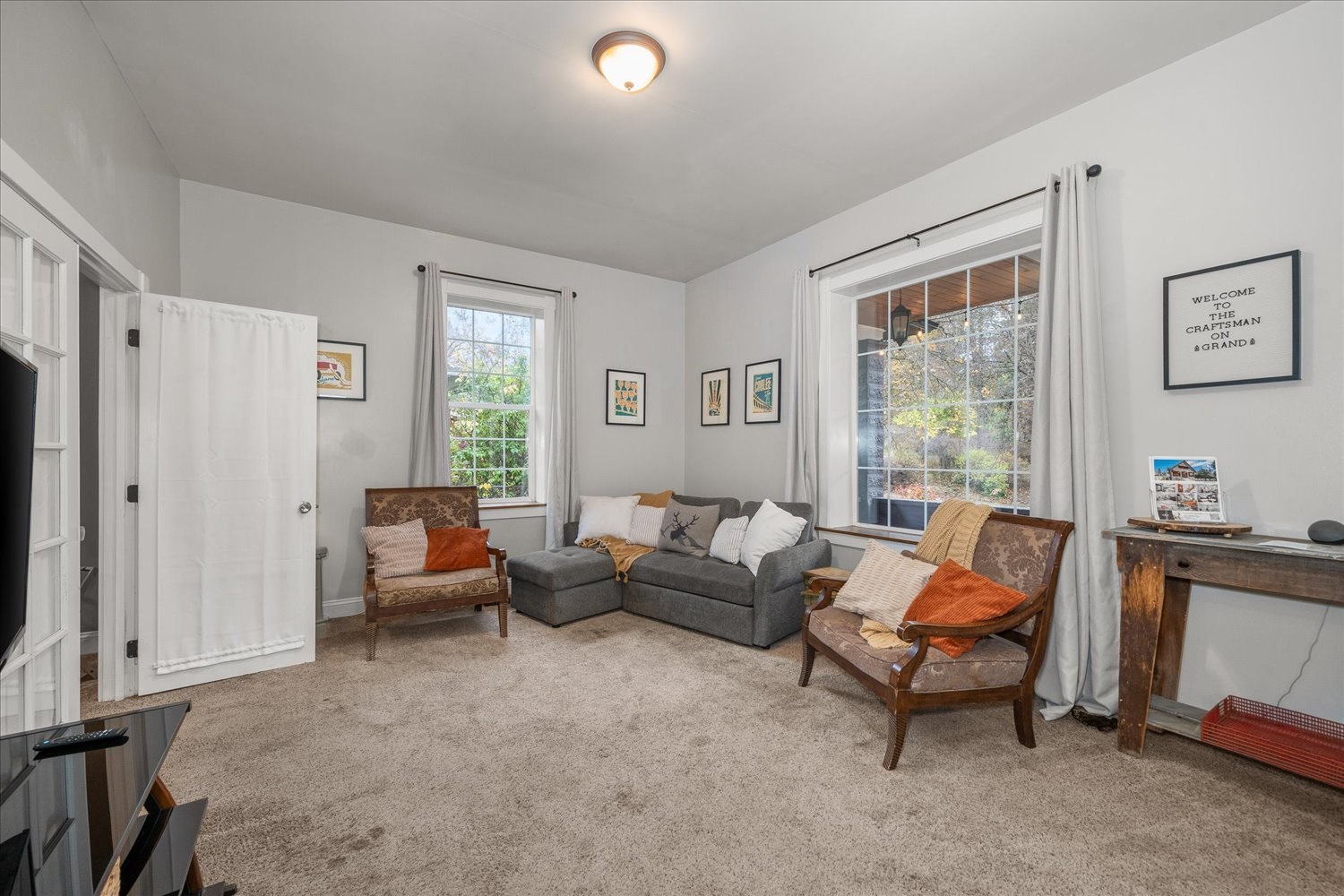 The second story includes a large room with a king bed, a room with a twin over full bunk bed and a smaller room with a twin bed and work area. The upstairs has a full bathroom with a clawfoot tub and separate shower. Guests will also be able to enjoy a second family room area with a smart TV and a Juliet balcony.