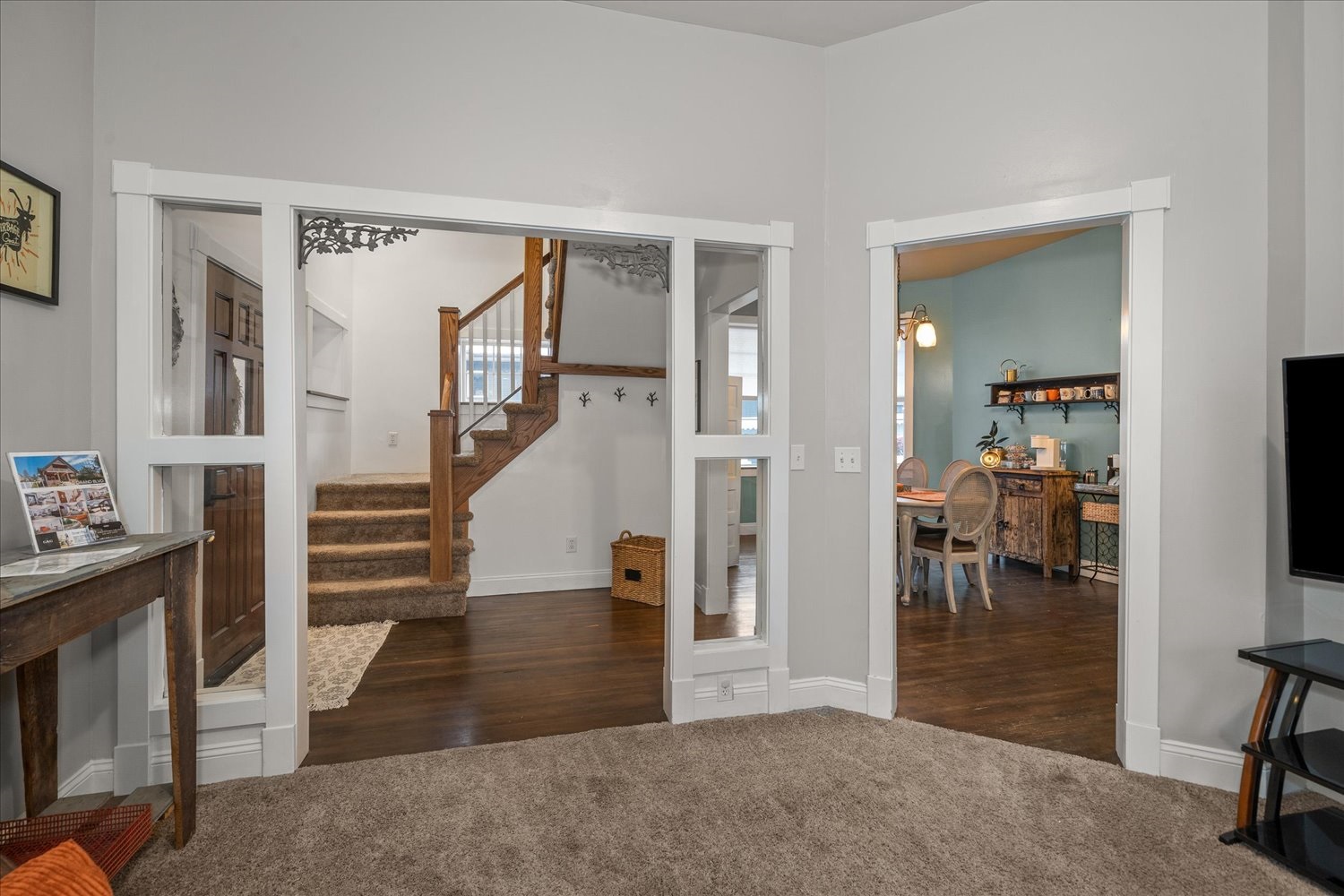 There is a full covered porch overlooking Manito park in the front and off-street uncovered parking in the back for 2-3 cars. There is room to turn around in the back for easy access to tree-lined Grand Blvd. The home also has a bus stop on the corner with quick access to hospitals, downtown and the plaza if you prefer not to drive."