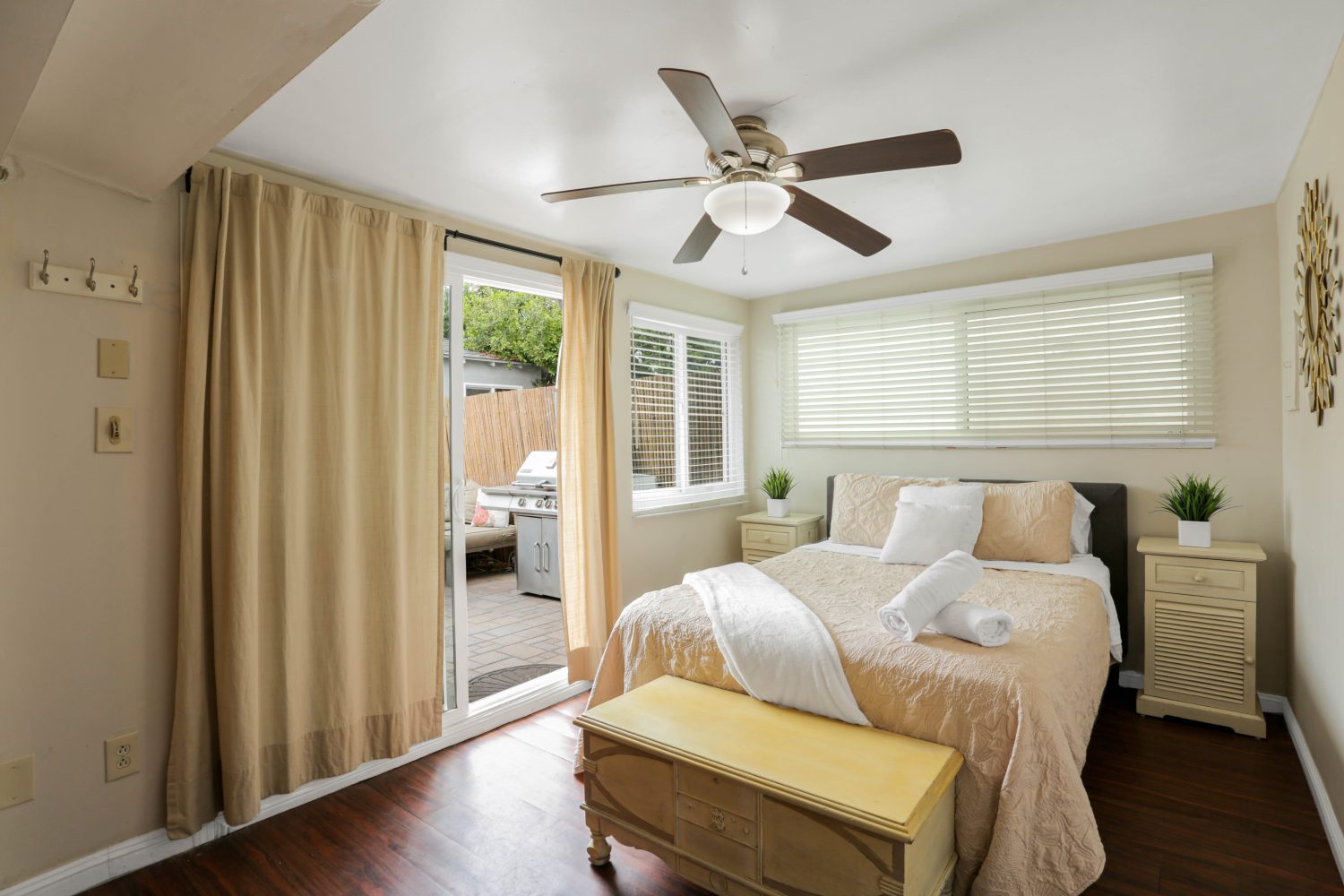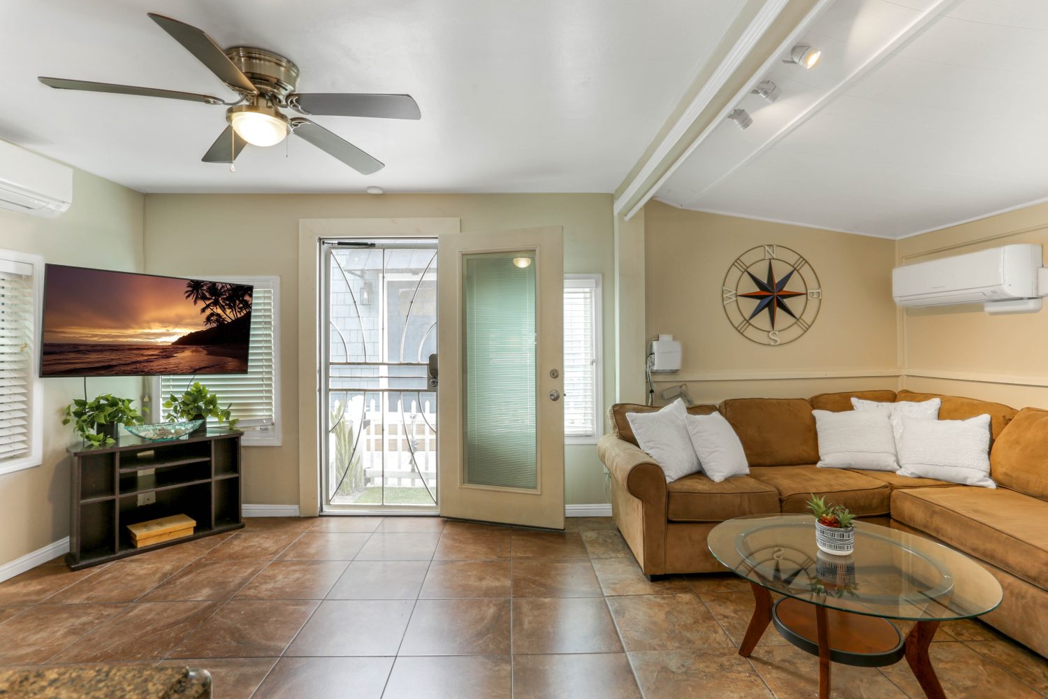 Mission Beach Cottage that sleeps up to 8 people! GIANT Rooftop deck to soak in the sun all day or BBQ on the ground level patio! Each room has Mini-split AC's for individual climate control. Primary bedroom has a Queen & Full size beds, while the additional bedroom has a Queen Bed and access to the patio. Living room has large sectional couch with pull out memory foam full size mattress. Two bathrooms, one has a bathtub. Two parking spots in garage and one outside of it. Minimum Age 30.