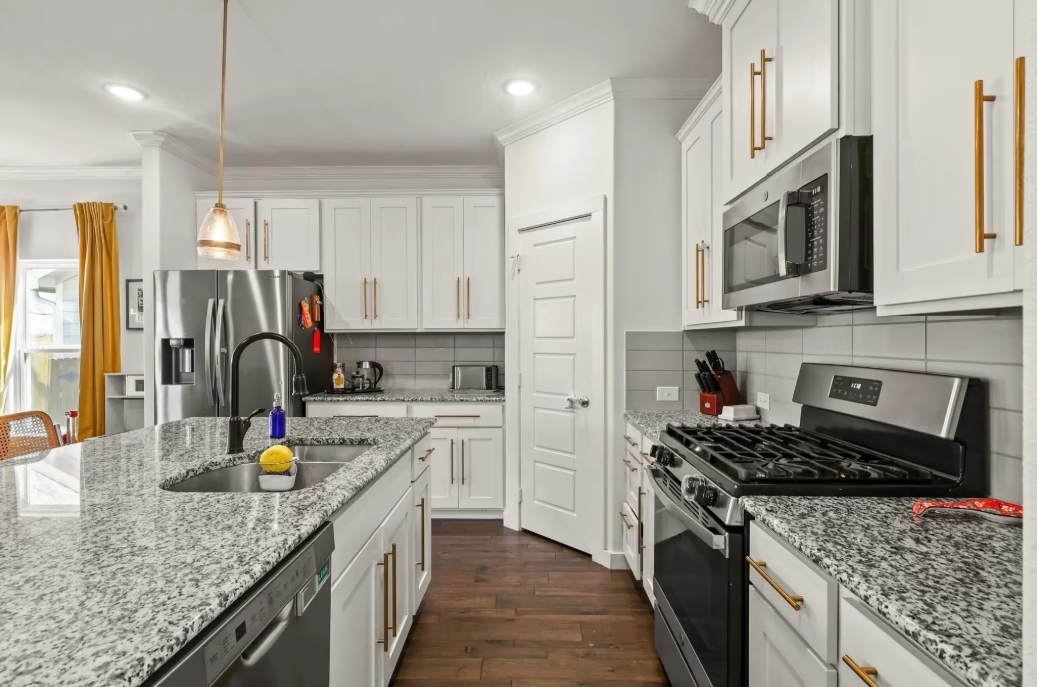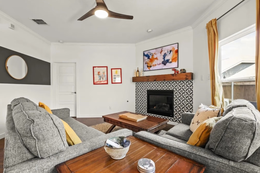 Escape to our 5-BR, 2-story home in a quiet, family-friendly neighborhood! Unwind in the main-floor master suite with its spacious walk-in closet & private en-suite bath. Four additional bedrooms, each with its own walk-in closet, provide ample space for everyone. Located just minutes from hospitals & universities (TWU/UNT), our home boasts an open floorplan, a stylish kitchen, & a cozy, kid-safe fireplace. Relax on the porch or enjoy the private, turfed backyard. 2-car garage included.
