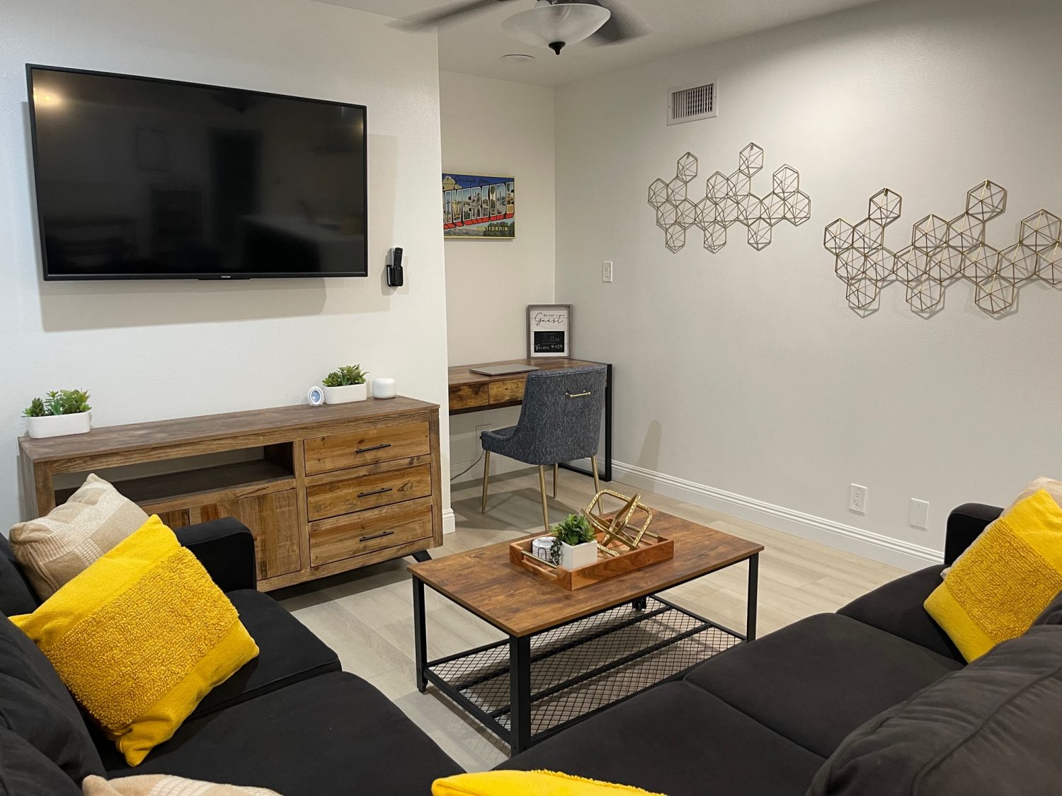 Welcome to our serene modern home! We hope you enjoy all the attention to detail we put into this home. Technology offerings include high-speed internet and keyless entry. The kitchen features stainless steel appliances for your culinary needs. This home was recently remodeled 3 bedroom & 2 bathroom home. Open Space format.