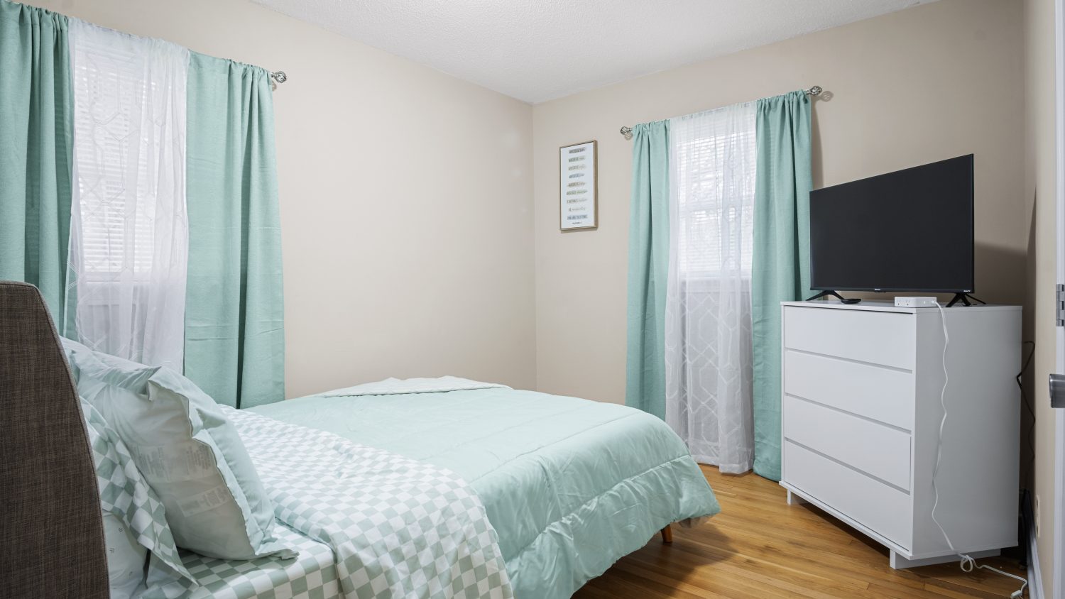 •43” TV w/ Roku in the secondary bedroom(Mint decor)