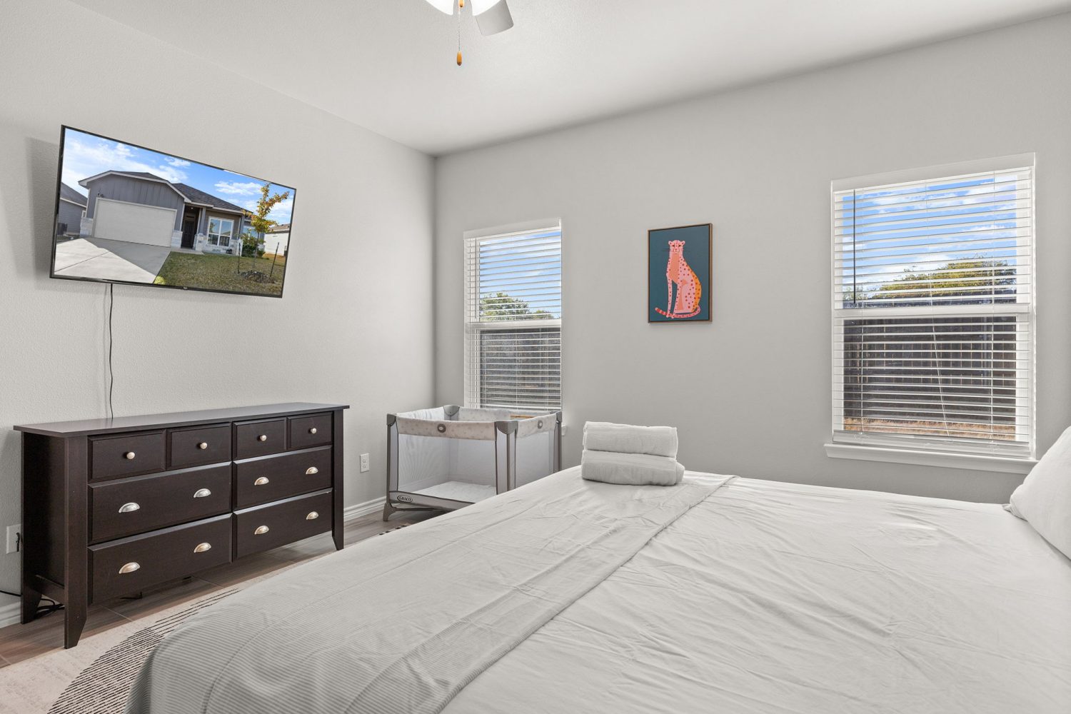 Step into a bright, airy space with modern decor and all the comforts of home. Unwind on the full-size pull-out sofa bed, stream your favorite shows on the 65"" 4K Roku Smart TV, or gather for a fun game night.