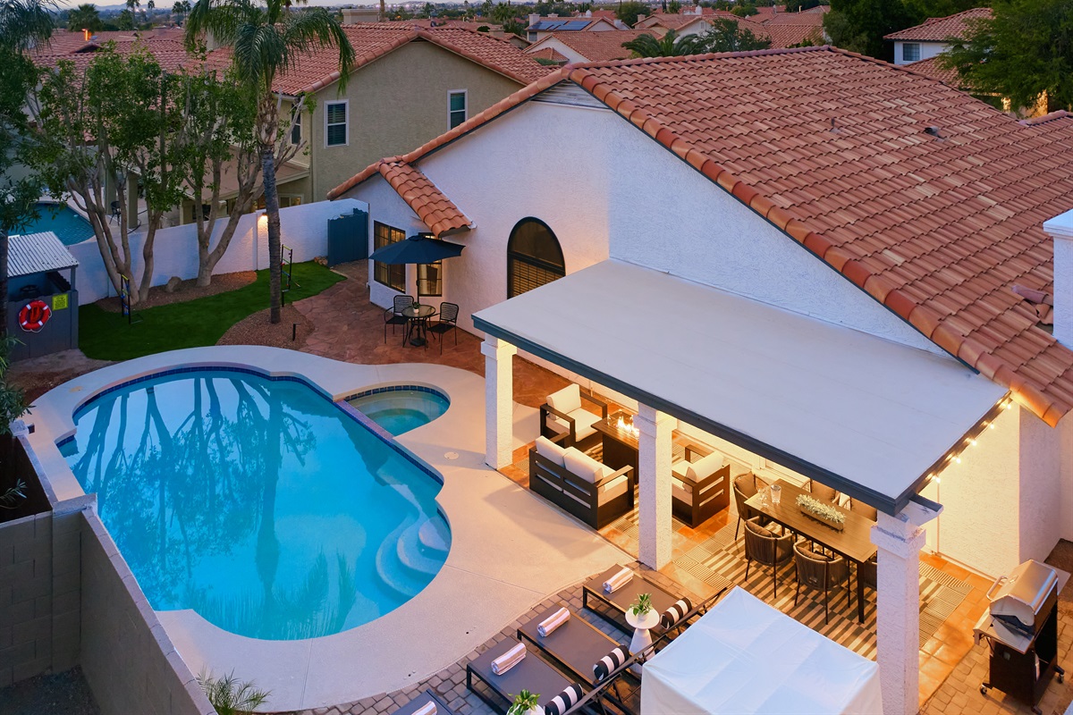 Stunning, newly designed home in the heart of Scottsdale! Step inside this fully updated interior featuring a brand-new, professionally curated design - modern, fresh, and stylish. This 4-bedroom home offers 3 King Size Beds, 2 XL Twins, 2 spacious living areas, 7 Smart TVs, sleek finishes, and an open layout perfect for comfortable daily living. Enjoy a bright contemporary great room, refreshed kitchen, bathrooms, and thoughtfully selected fixtures, textures, and Brand New furnishings (inside and out) that create a magazine-worthy look throughout. The backyard paradise offers plenty of room and seating to relax or entertain. You'll love the heated pool with built-in sap/hot tub, gas BBQ, fire table, turfed lawn, soft scape dog run and NEW Universal EV Charger. Just 10-15 minutes to the best shopping, dining, golf, and lifestyle amenities that N. Scottsdale is known for. Capture this rare opportunity to relax/recover and live in a beautifully revamped vacation home with a true designer feel. This home is your perfect Scottsdale escape.