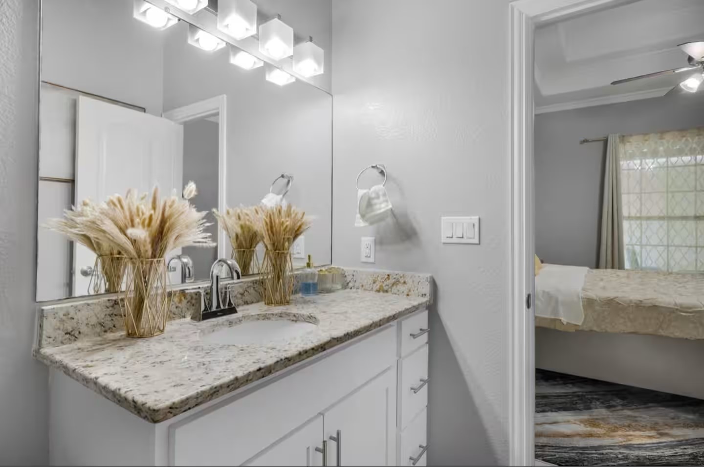 Step into an open-concept layout with high ceilings that make the entire space feel light, airy, and welcoming. The home features 3 comfortable bedrooms, 2 modern bathrooms with walk-in showers, and thoughtful touches throughout to make your stay easy and enjoyable.