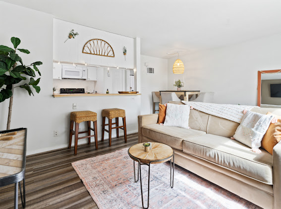 Experience serene comfort at this 1BR condo, nestled in a sought-after neighborhood. Enjoy features like in-unit laundry, a memory foam mattress, gated entry, a full kitchen, and a relaxing bathtub. Elevate your stay with stylish interior design, complimentary coffee/tea, 24-hour self check-in, a smart TV, and AC. With easy access to major freeways and walking distance to dining and shops, it's the perfect location. And pets are welcome! Book now for a perfect blend of convenience and style!