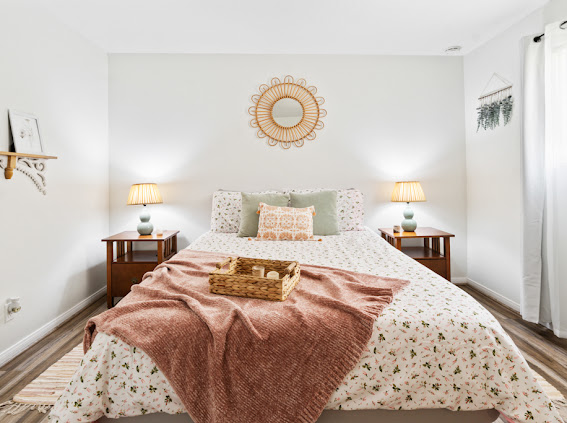 -Unwind in the cozy bedroom or organize your wardrobe in the walk-in closet