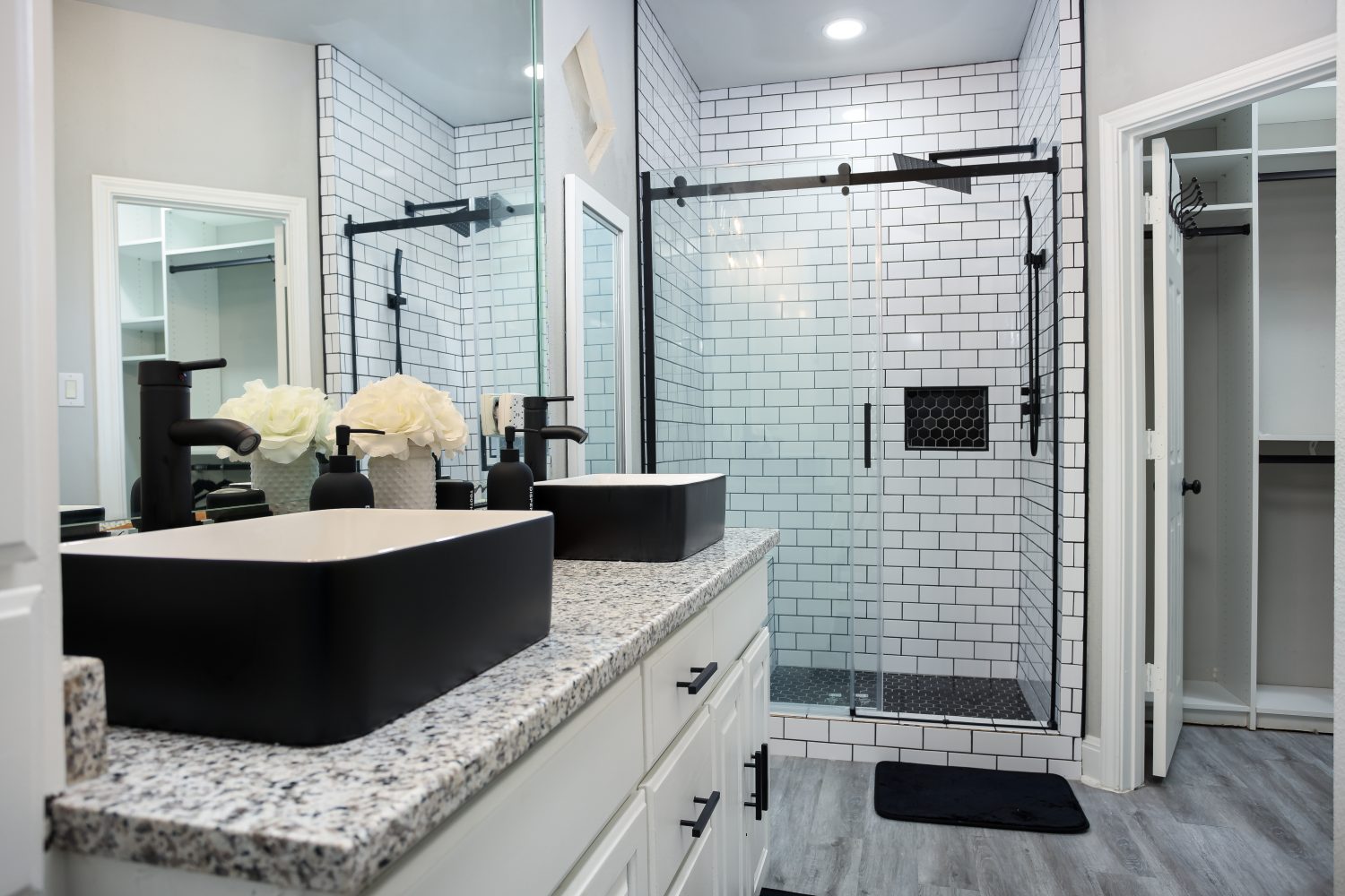 Both bathrooms in this rental are impeccably designed. The master bathroom showcases a rainfall shower, a double vanity with ample storage space, and a separate enclosed toilet. The guest bathroom also features a rain-head shower, a single vanity, and a toilet, ensuring the bathroom needs of all occupants are met.