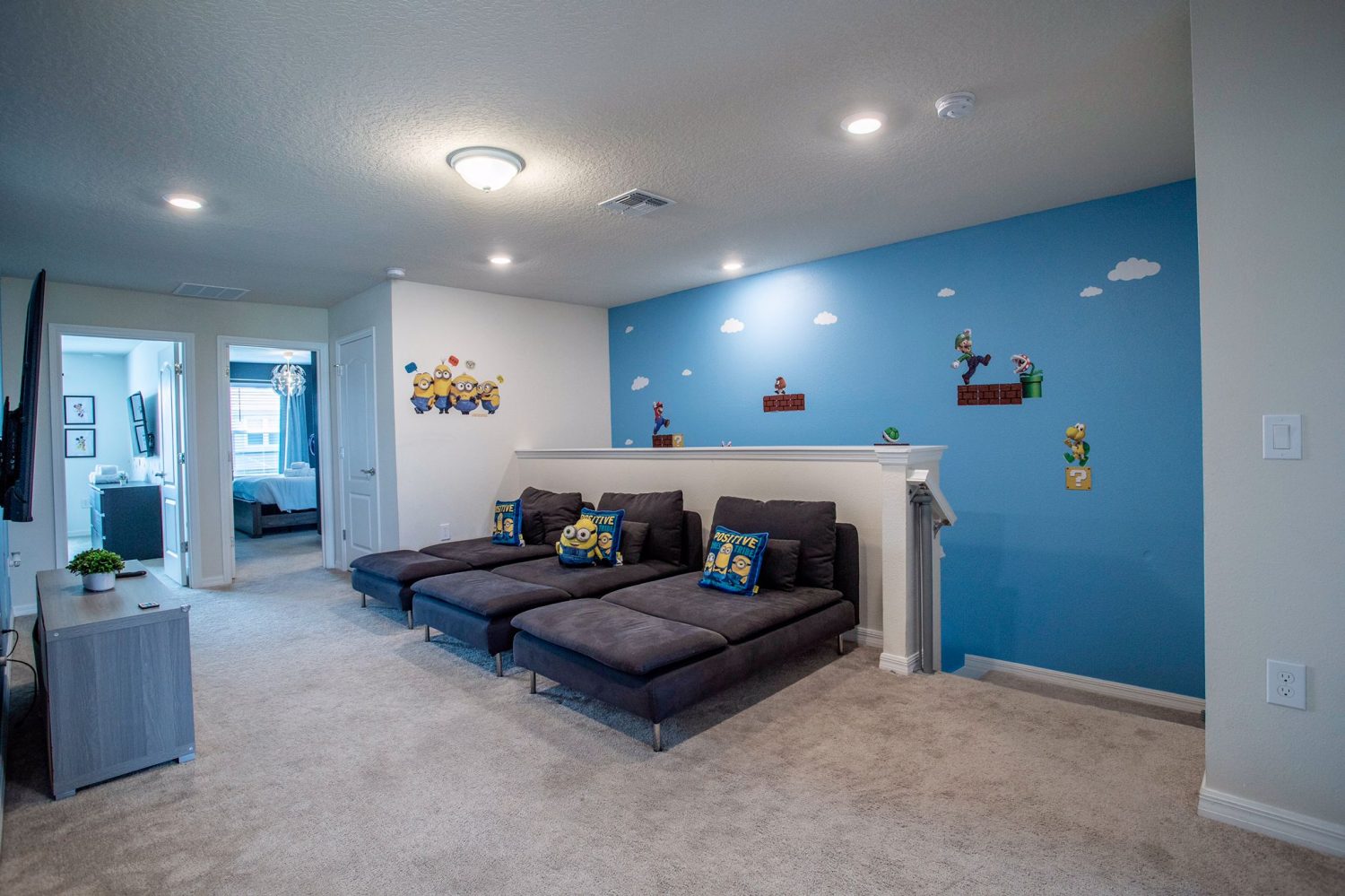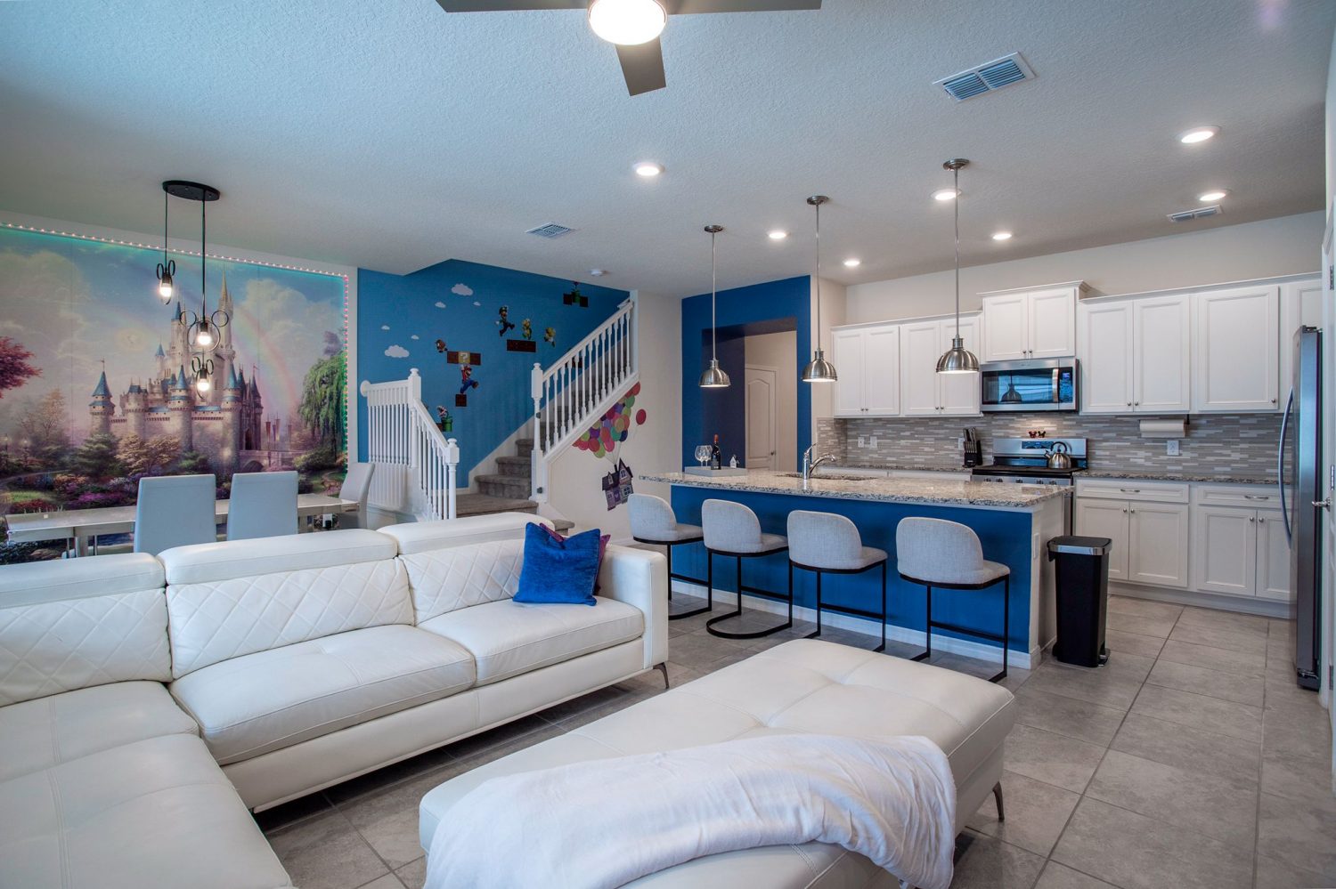 The property is fully furnished with high-quality thematic decor, a fully equipped kitchen, and an in-unit washer/dryer. Families can find normalcy with a private screened-in heated pool and high-speed internet included.