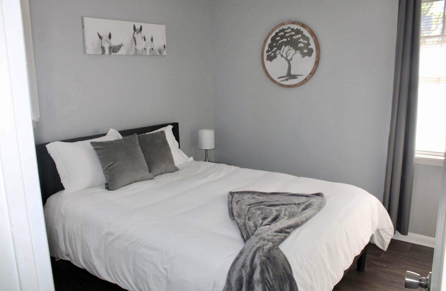 Come relax with family, friends and/or business partners. Found in a quiet neighborhood with a gated yard, this newly renovated home exudes peace and privacy. While relaxing, you can also play basketball, access the fire pit or sit outside enjoying the weather. While resting, each bedroom includes a Queen size bed with blackout curtains.