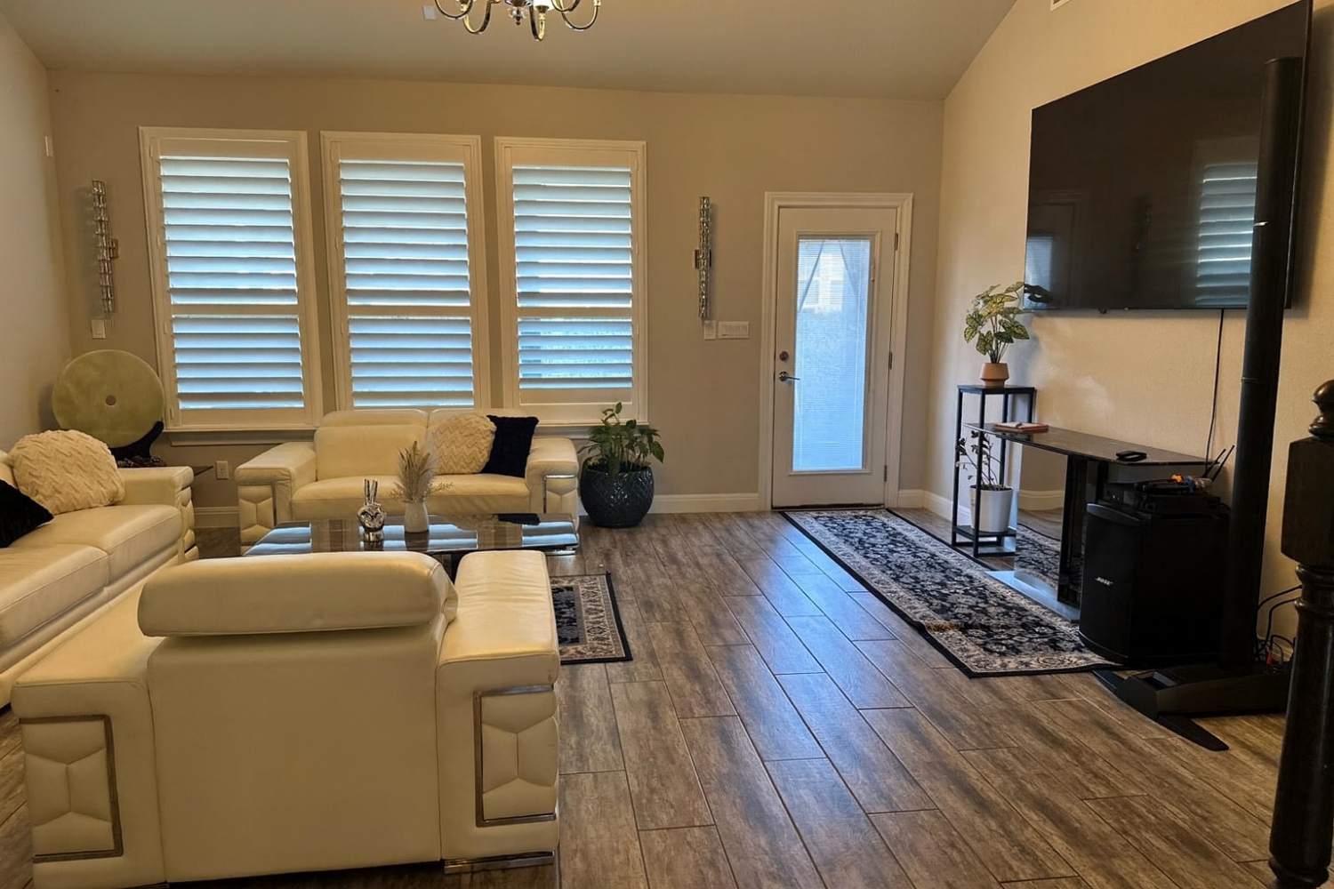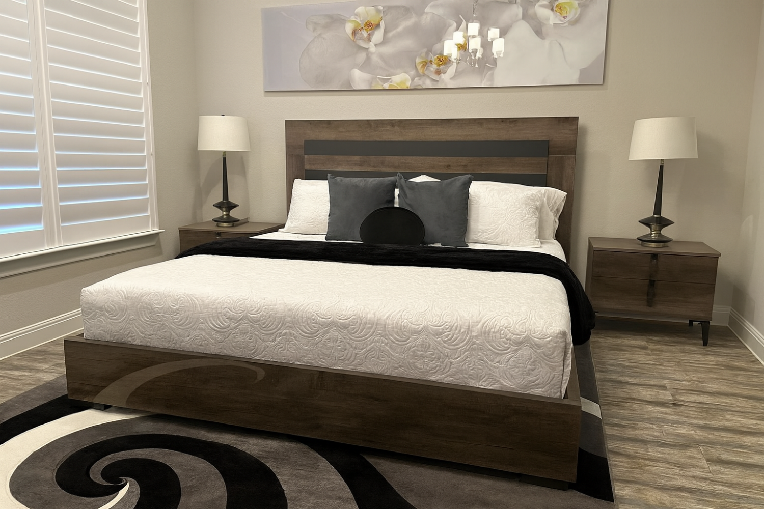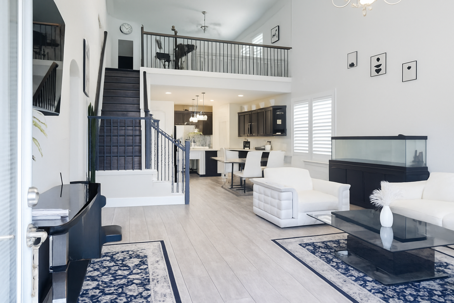 Welcome to your Austin retreat – a modern, high-end home designed for unforgettable group stays. With cathedral ceilings, designer finishes, and luxurious leather furnishings, this property offers both style and comfort. Whether you’re hosting karaoke nights, enjoying a ping pong showdown, or lounging under custom lighting, this home is built for entertainment and relaxation.