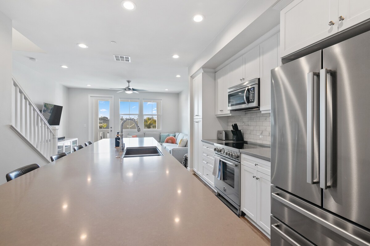 Enjoy a stylish experience at this centrally-located place! Just four minutes from the beach, this luxurious townhome was built in 2020. Spend the day at one of Southern California's most gorgeous beaches or enjoy the community heated pool, outdoor fire pit, barbecue and community tables. No detail spared, this spacious, modern 4-bedroom, 4-bath townhome is the perfect home base for exploring everything that Oceanside and San Diego have to offer. Fully furnished with everything you need.