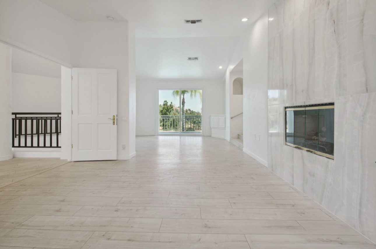Inside, the home impresses with soaring ceilings, natural light, and sweeping views from every room. The open floor plan includes a formal living room with a cozy fireplace, a spacious family room with a second fireplace, and a newly remodeled kitchen with top-tier appliances and custom cabinetry. A ground-level en-suite bedroom and powder room complete the main floor, while the upper level offers a luxurious primary suite with a private balcony, a spa-like bath, and a cozy sitting area with its own fireplace. Three additional en-suite bedrooms and a large loft provide plenty of space for family or guests.
