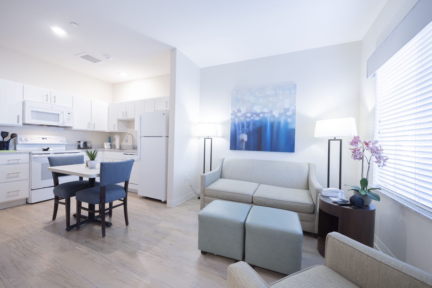 Fully Furnished corporate suites are ranging in size from 1-3 bedrooms and clients can rent the rooms for 1-365 days at a time.